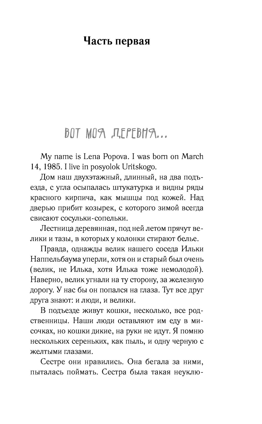 Это история взросления – офигения, онемения, озарения, переосмысления – и всего прочего, что может случиться с не слишком умной, не особенно красивой и не отмеченной талантами девочкой, родившейся в конце ХХ века в небольшом – вымышленно-реальном – поселке городского типа где-то на просторах России.