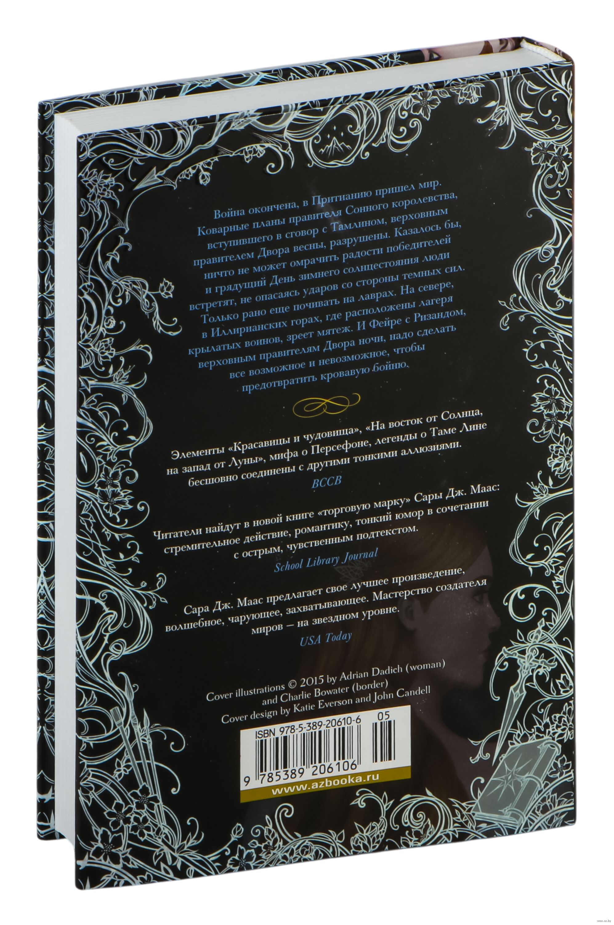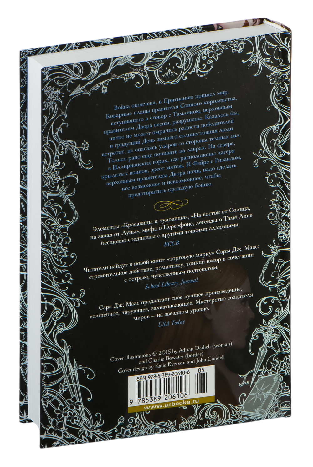 Война окончена, в Притианию пришел мир. Коварные планы правителя Сонного королевства, вступившего в сговор с Тамлином, верховным правителем Двора весны, разрушены. Казалось бы, ничто не может омрачить радости победителей, и грядущий День зимнего солнцестояния люди встретят, не опасаясь ударов со стороны темных сил. Только рано еще почивать на лаврах. На севере, в Иллирианских горах, где расположены лагеря крылатых воинов, зреет мятеж. И Фейре с Ризандом, верховным правителям Двора ночи, надо сделать все возможное и невозможное, чтобы предотвратить кровавую бойню.