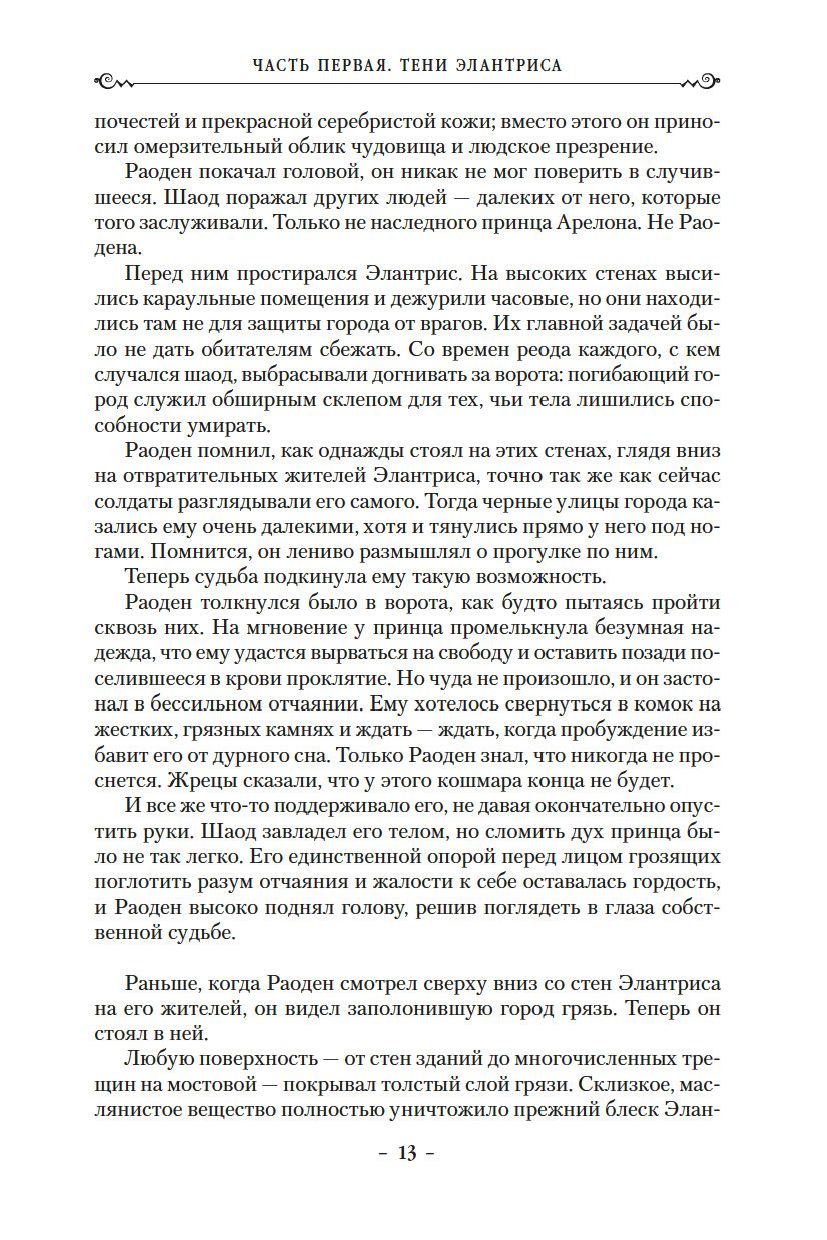 Величественный Элантрис, город богов, средоточие магии, мудрости и несказанной красоты, был подобен серебряному костру, горящему в вечности. Стать элантрийцем и уподобиться богам мог любой человек, которого касался шаод – таинственное преображение, наделяющее избранных волшебной силой.