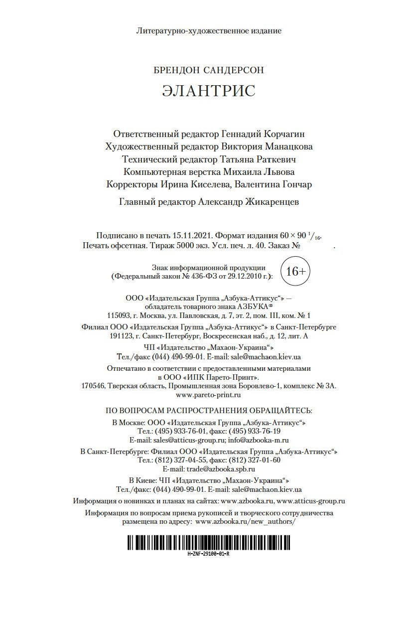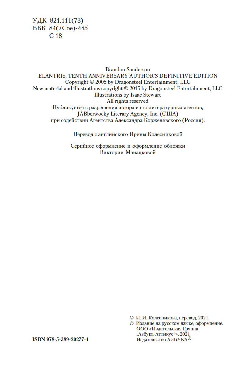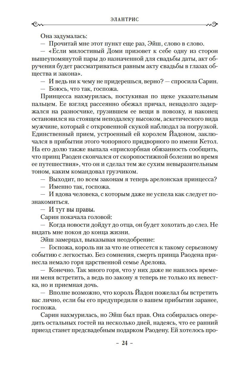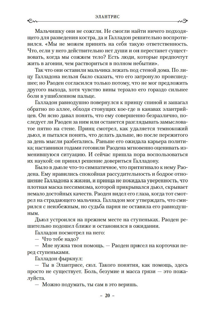 Вечность закончилась десять лет назад. Прекрасный город пал, а благословение шаода обернулось проклятием. Новая столица Арелона, маленький Каи, живет в тени черных стен Элантриса, стараясь не замечать города, ставшего резервацией для тех несчастных, кого по-прежнему забирает шаод. Но очередной жертвой оказывается Раоден, наследный принц Арелона...