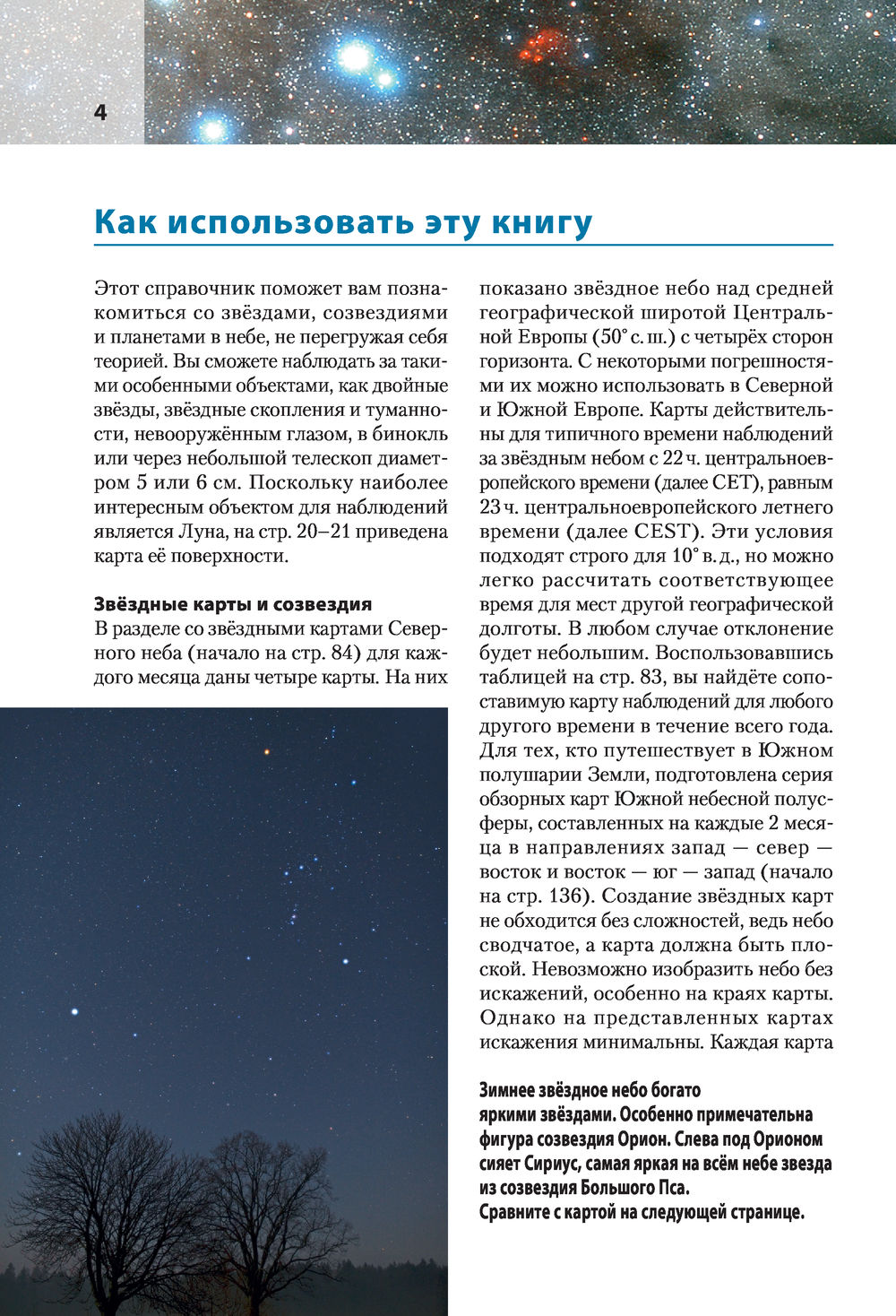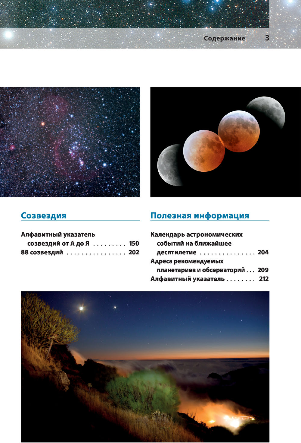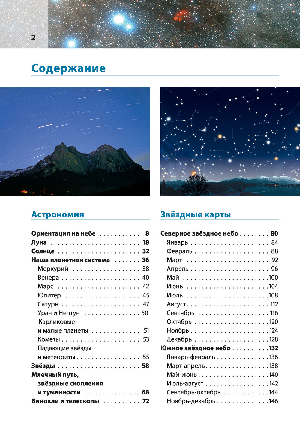 Книга содержит 60 звёздных карт Северного и Южного полушарий по месяцам, подробные описания 88 созвездий, календарь астрономических событий на ближайшее десятилетие, а кроме того, самые интересные сведения о различных космических объектах и процессах.