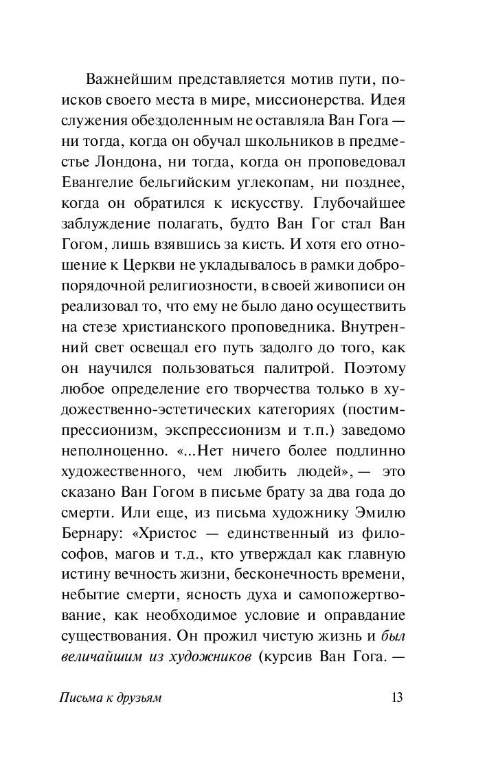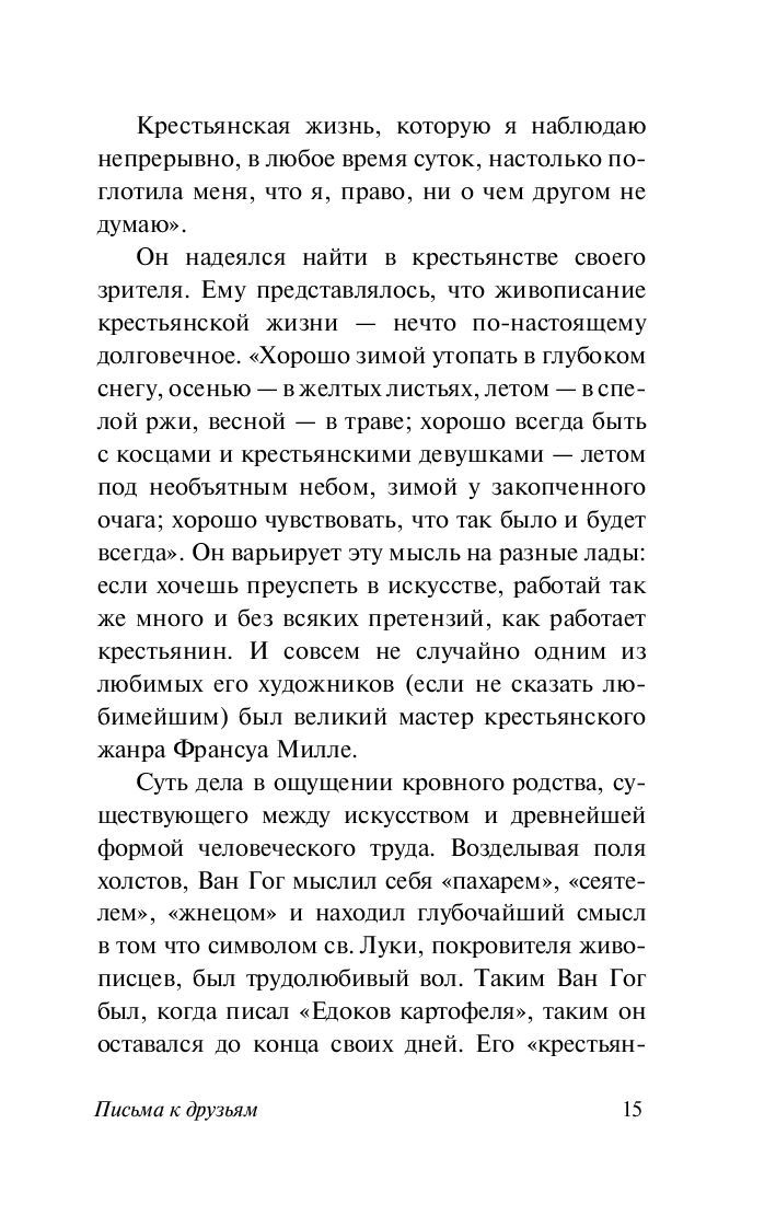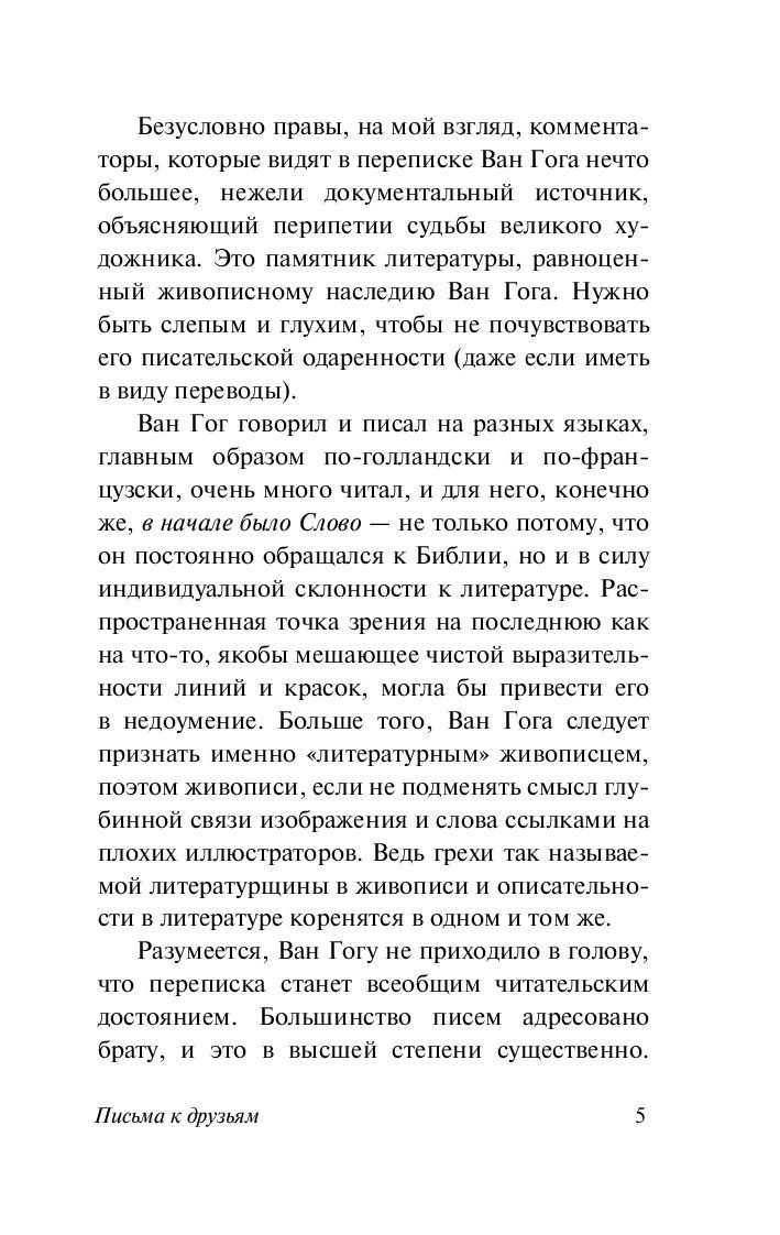 Ван Гог писал много и охотно – писал лучшему другу Полю Гогену, Антону ван Раппарду, Эмилю Бернару и другим, и письма его представляют собой своеобразную "творческую исповедь" не признанного при жизни гения, за каждой из работ которого стоит колоссальное душевное и духовное напряжение.