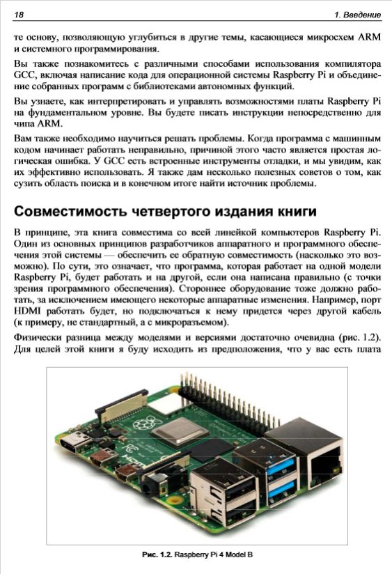 Рассмотрены основы программирования на языке ассемблера для процессоров ARM на примере Raspberry Pi с операционной системой Raspberry Pi OS. Приведены подробные сведения об архитектуре и особенностях ARM, вызовах операционной системы. Подробно описан синтаксис ассемблера для ARM. Рассмотрены компоновщик GCC, отладка с GDB, использование функций языка C в ассемблере с помощью библиотеки libc. Описаны функции GPIO, система команд ARM Neon и команды Thumb. Все разделы снабжены практическими примерамии. Книга ориентирована на начинающих разработчиков, желающих освоить программирование на языке ассемблера для устройств с архитектурой ARM.