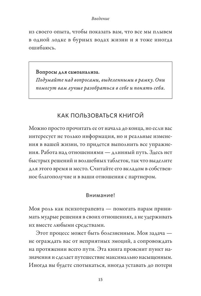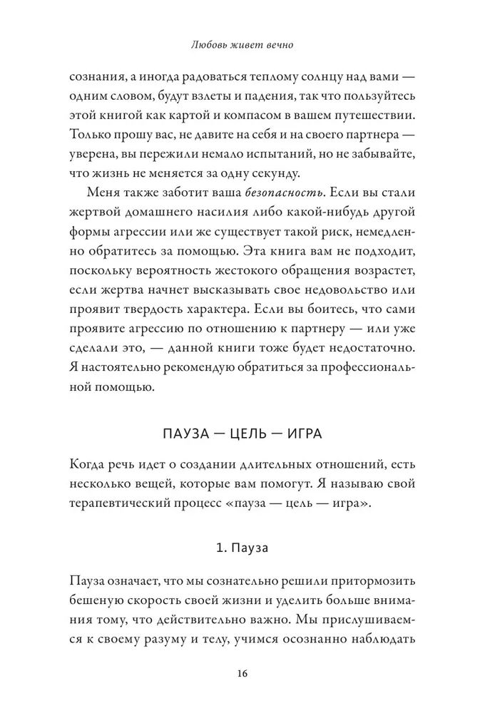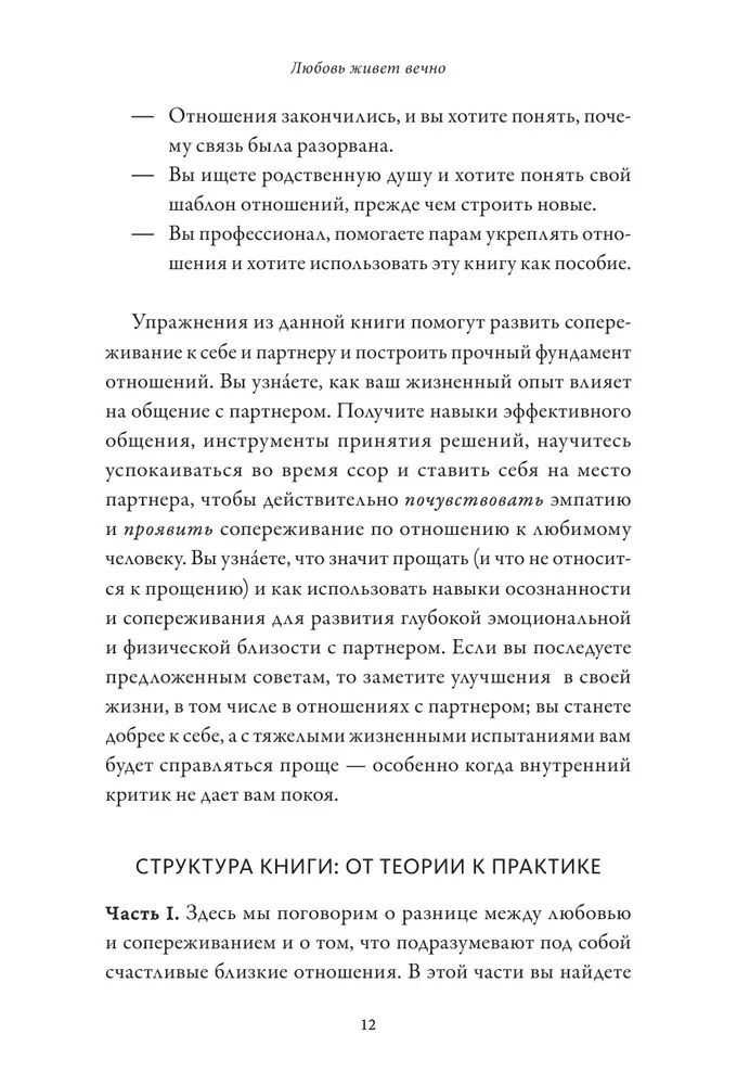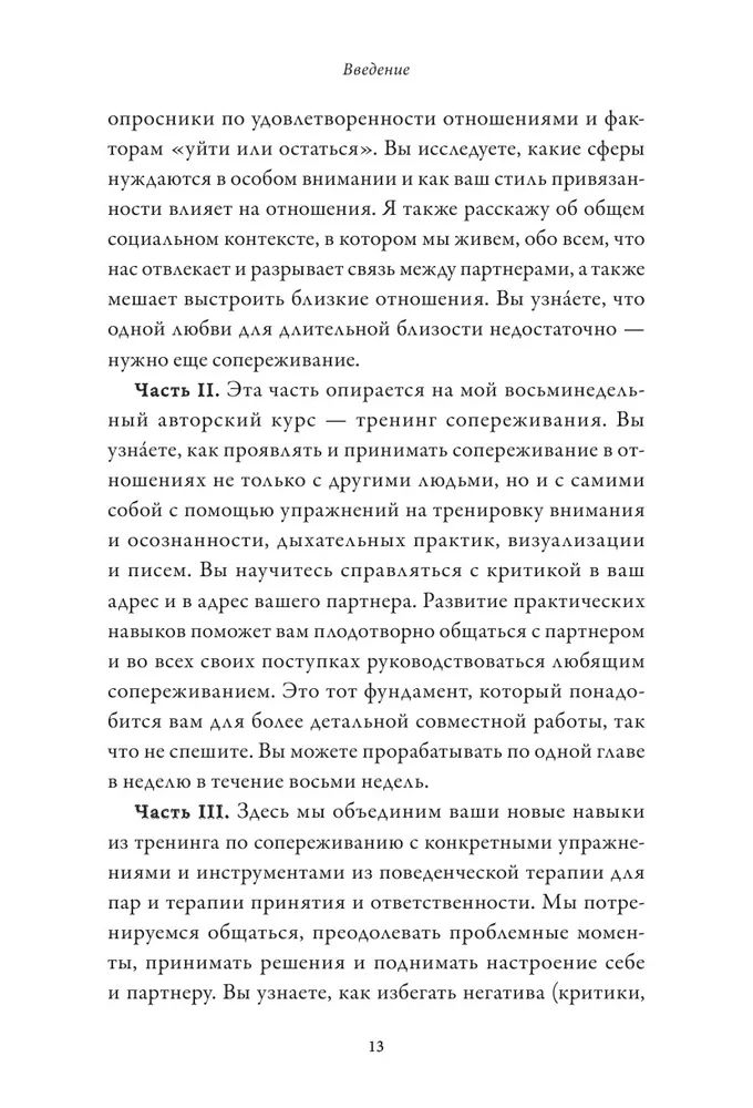 Книга об исследованиях в области романтических отношений, осознанности, нейробиологии и позитивной психологии. Включает в себя навыки из трех научно обоснованных видов психотерапии, а также примеры из практики и личной жизни автора.