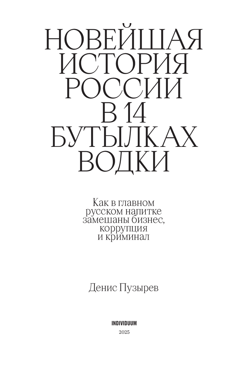 Журналист Денис Пузырев проследил социальную, экономическую и политическую историю водки после распада СССР. Почему самая известная в мире водка – "Столичная" – уже не русская? Что стало с Владимиром Довганем? Как связаны Владислав Сурков, первый Майдан и "Путинка"? Удалось ли перекрыть поставки контрафактной водки при Путине? Как его ближайший друг подмял под себя рынок? Сколько людей полегло в битвах за спиртзаводы? "Новейшая история России в 14 бутылках водки" открывает глаза на события последних тридцати лет с неожиданной и будоражащей перспективы.