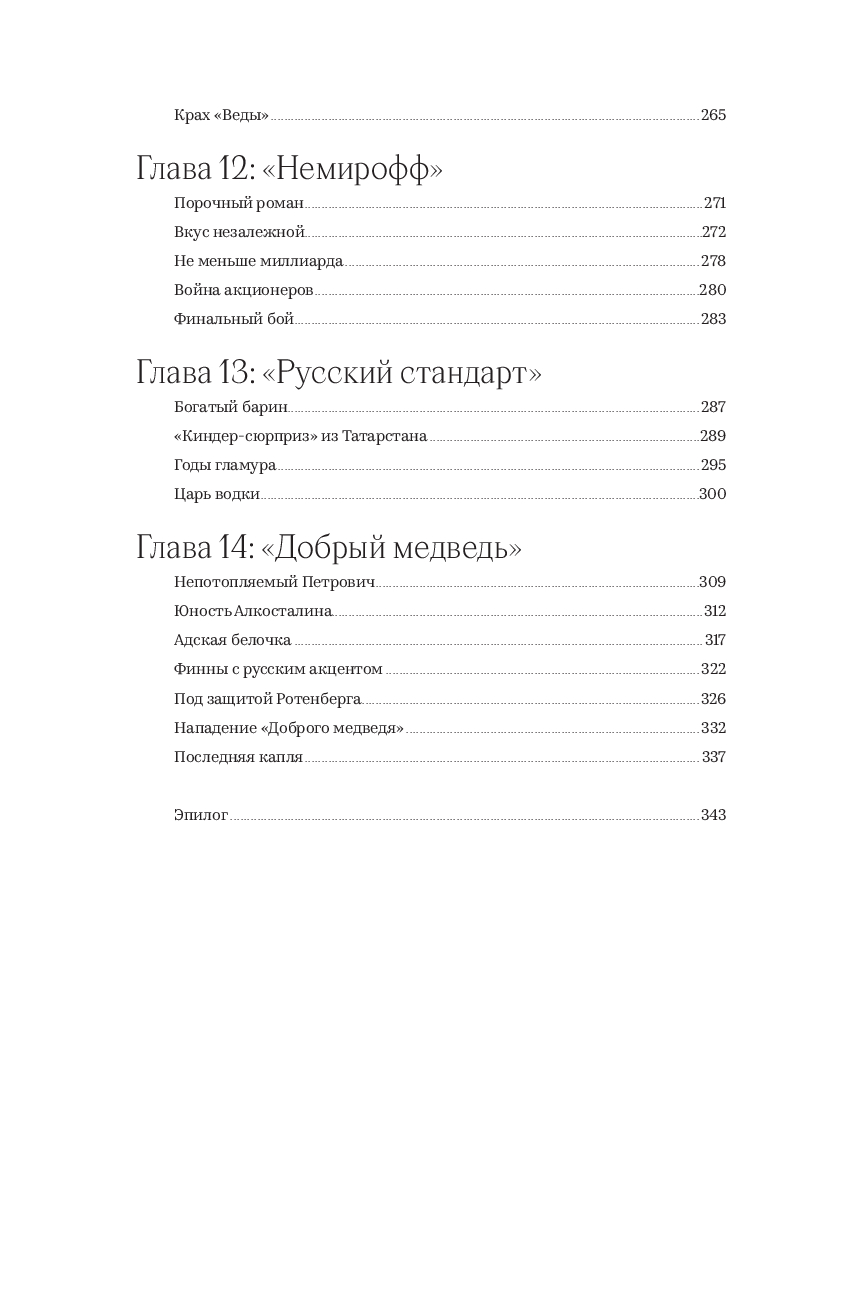 Водка – один из неофициальных символов России, напиток, без которого нас невозможно представить и еще сложнее понять. А еще это многомиллиардный и невероятно рентабельный бизнес. Где деньги – там кровь, власть, головокружительные взлеты и падения и, конечно же, тишина. Эта книга нарушает молчание вокруг сверхприбыльных активов и знакомых каждому торговых марок.