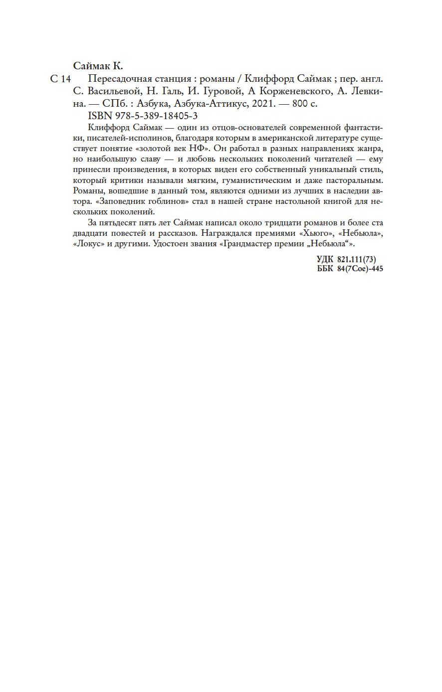 Клиффорд Саймак – один из отцов-основателей современной фантастики, писателей-исполинов, благодаря которым в американской литературе существует понятие "золотой век НФ". Он работал в разных направлениях жанра, но наибольшую славу – и любовь нескольких поколений читателей – ему принесли произведения, в которых виден его собственный уникальный стиль, который критики называли мягким, гуманистическим и даже пасторальным. Романы, вошедшие в данный том, являются одними из лучших в наследии автора. "Заповедник гоблинов" стал в нашей стране настольной книгой для нескольких поколений.