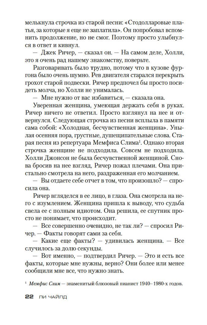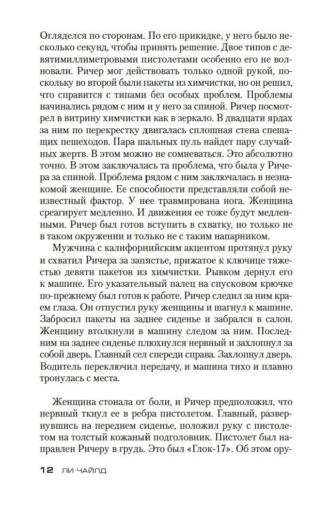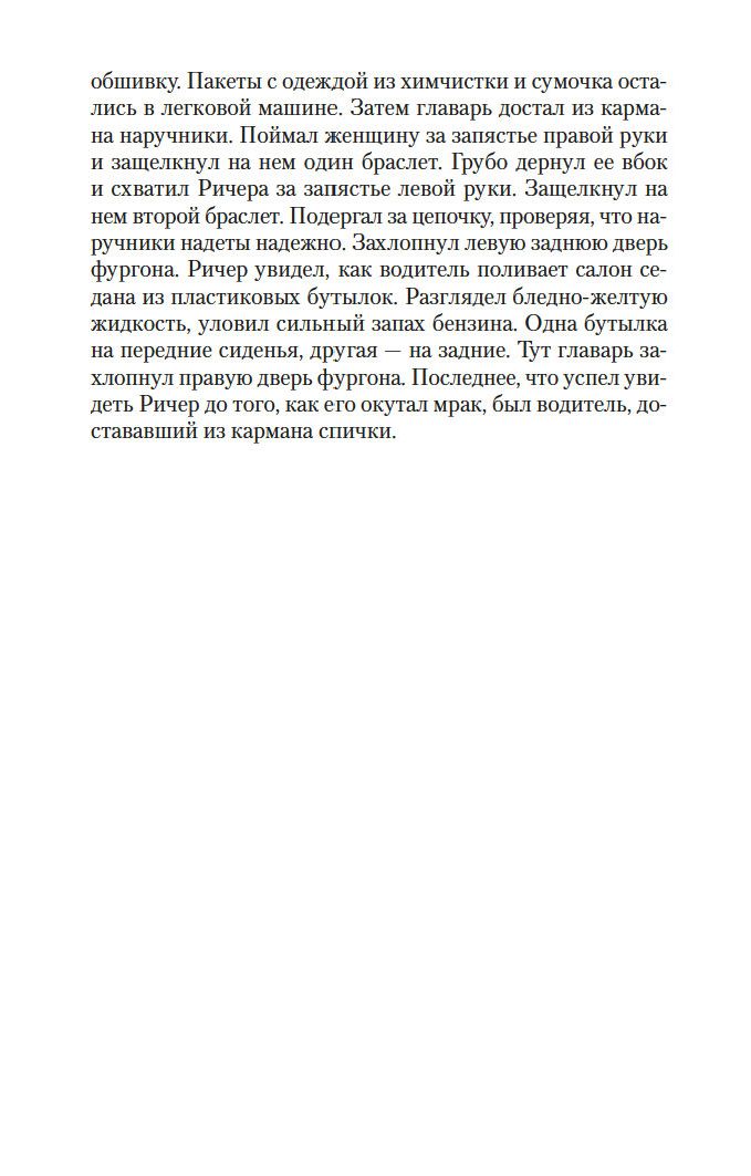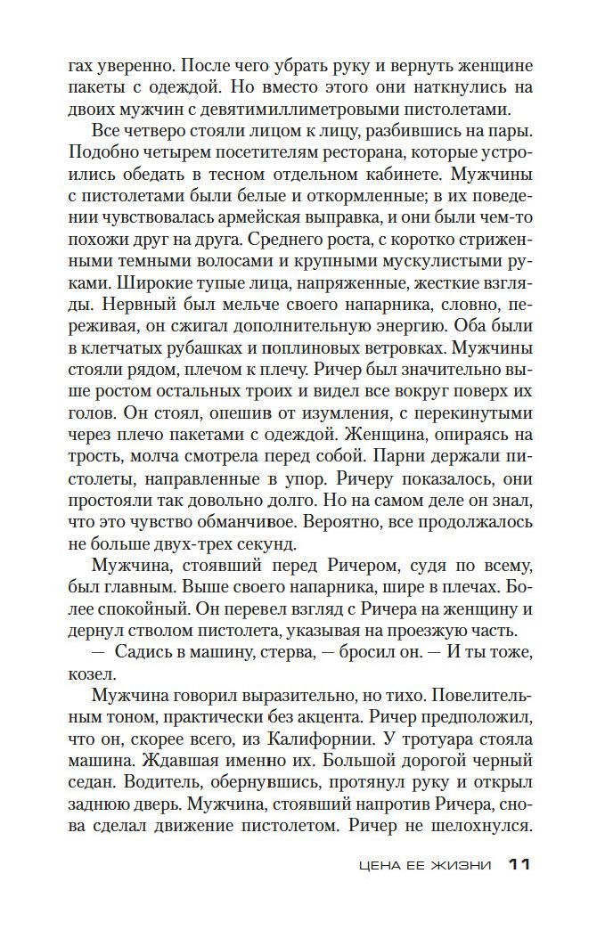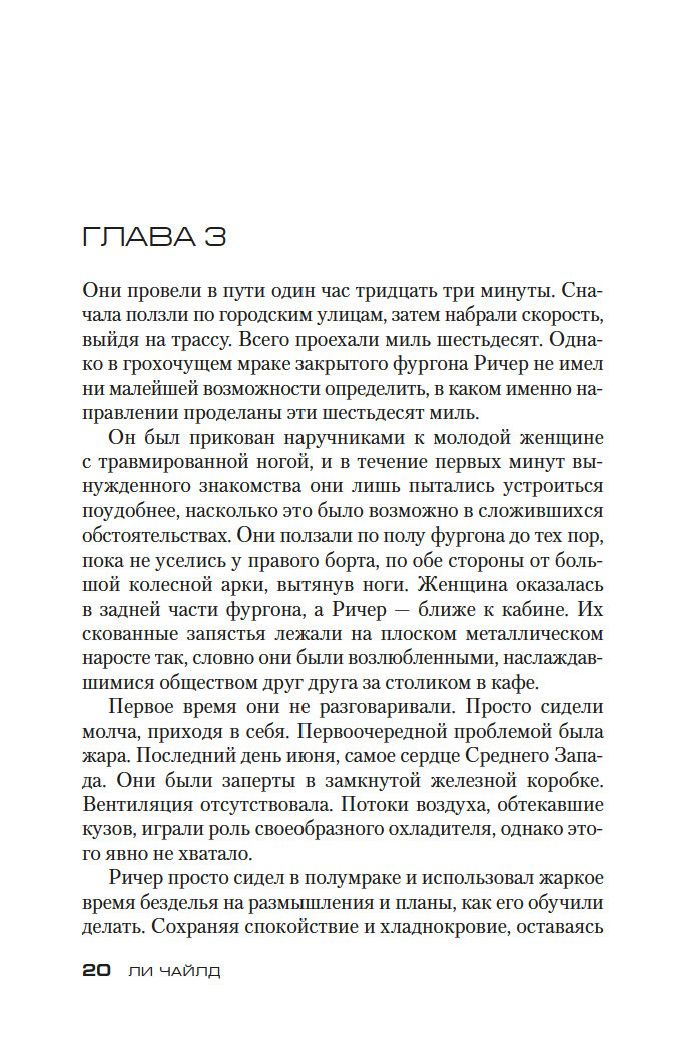 Джек Ричер, военный полицейский в отставке, видел эту женщину первый раз в жизни. У неё была травмирована нога, и он решил помочь незнакомке. Но, как известно, ни одно доброе дело не остаётся безнаказанным. Через считаные секунды Ричер оказался на заднем сиденье чёрного седана под дулом пистолета. Женщину втолкнули в машину следом. Это похищение? Да, причём средь бела дня и на оживлённой улице Чикаго. Их везут через всю Америку – понять, в каком направлении и с какой целью, невозможно, но после всего, что с ними произошло по пути, Ричер твёрдо уверен в одном: он должен спасти эту женщину любой ценой.