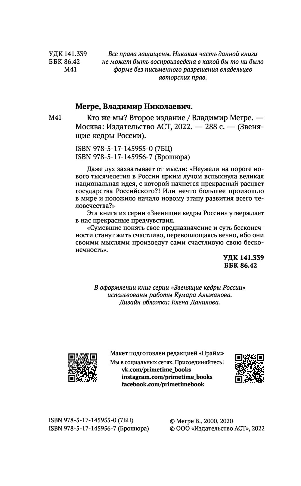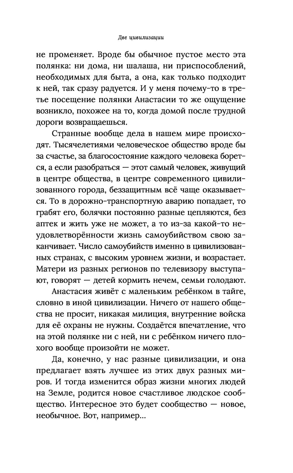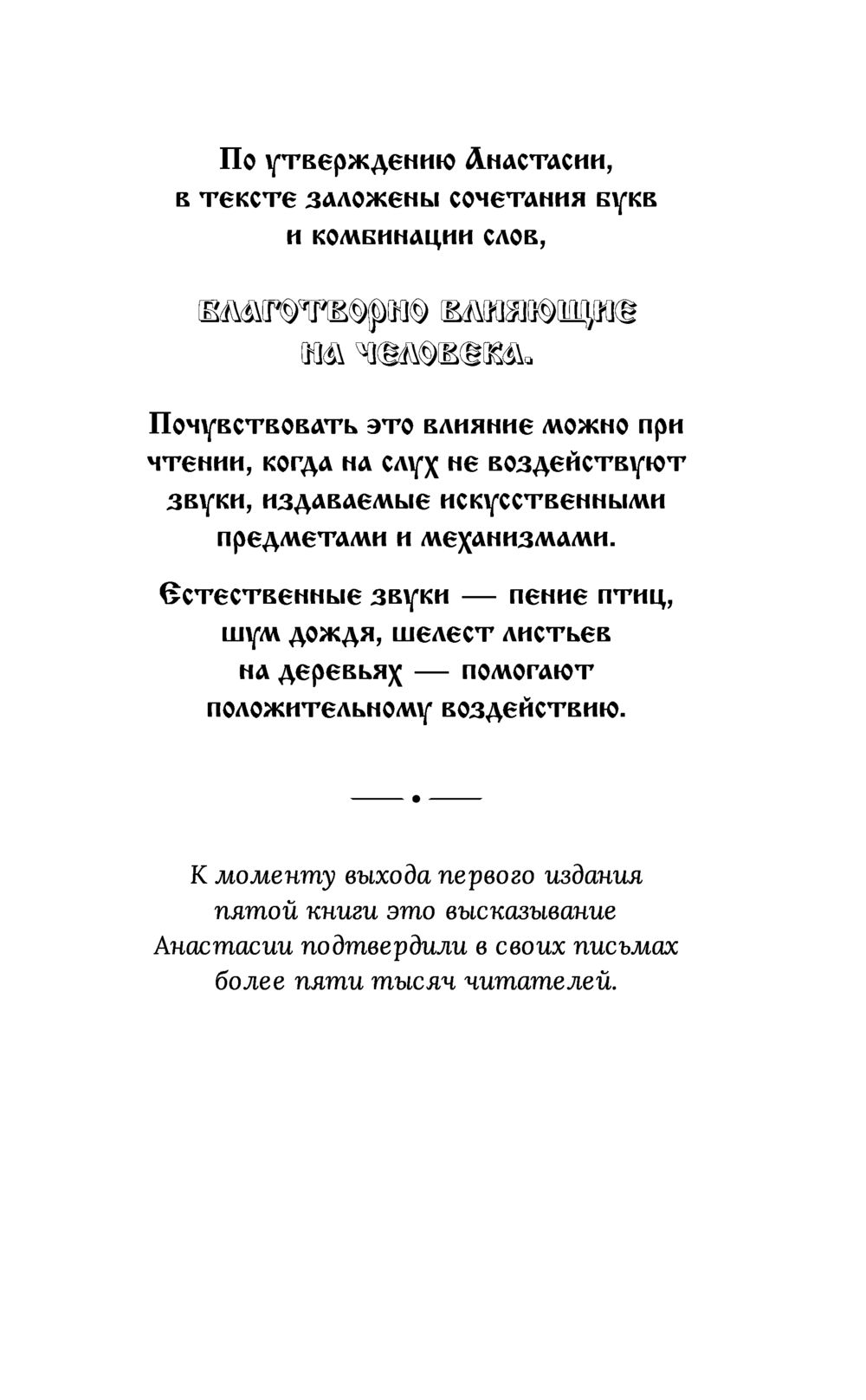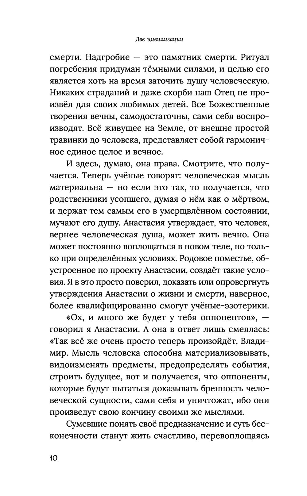 Эта книга из серии "Звенящие кедры России" утверждает в нас прекрасные предчувствия. "Сумевшие понять свое предназначение и суть бесконечности станут жить счастливо, перевоплощаясь вечно, ибо они своими мыслями произведут сами счастливую свою бесконечность".