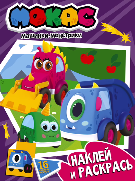 Машинки Мокас часто попадают в интересные истории. Внутри этой книжки ты найдёшь наклейки-образцы, опираясь на которые, сможешь раскрасить наших героев или придумать им новый имидж! Скорее бери карандаши и фломастеры!