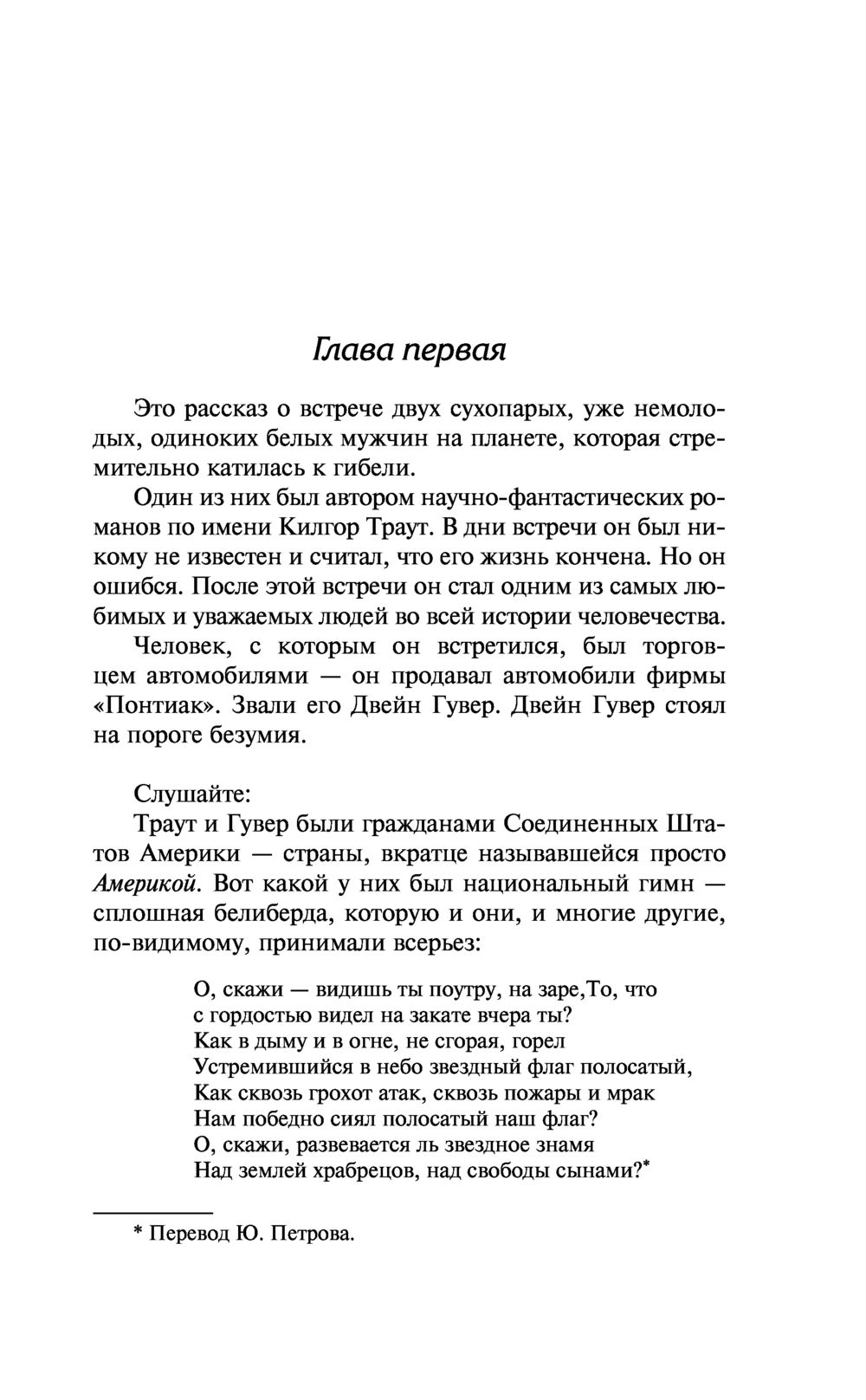 Впрочем, изменчивость всего сущего – неизменное свойство литературных миров, созданных фантазией Воннегута. Как неизменно и преклонение читателей перед его талантом.