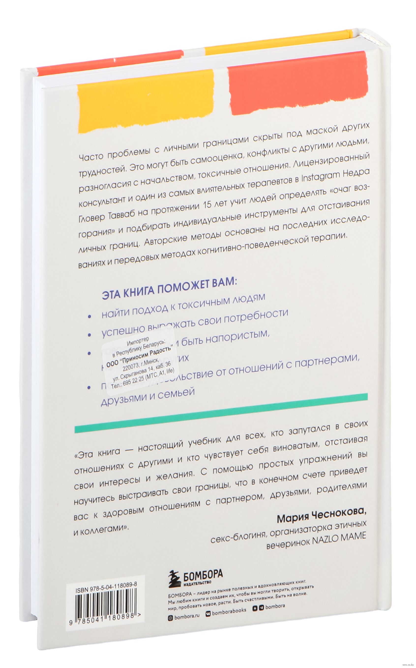 Лицензированный консультант, востребованный эксперт по отношениям и один из самых влиятельных терапевтов в Instagram Недра Гловер Тавваб на протяжении 15 лет учит людей определять "очаг возгорания" и подбирать индивидуальные инструменты для отстаивания личных границ. Авторские методы основаны на последних исследованиях и передовых методах когнитивно-поведенческой терапии.