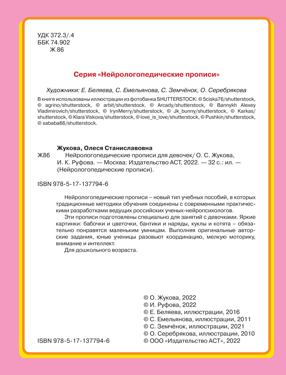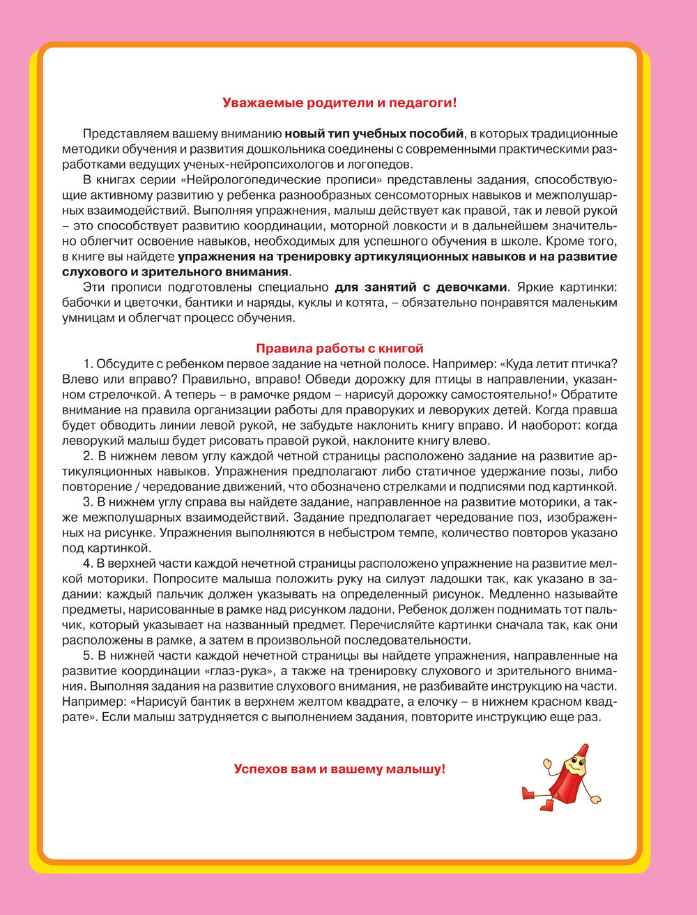 Эти прописи подготовлены специально для занятий с девочками. Яркие картинки: бабочки и цветочки, бантики и наряды, куклы и котята – обязательно понравятся маленьким умницам. Выполняя оригинальные авторские задания, юные ученицы разовьют координацию, мелкую моторику, внимание и интеллект.