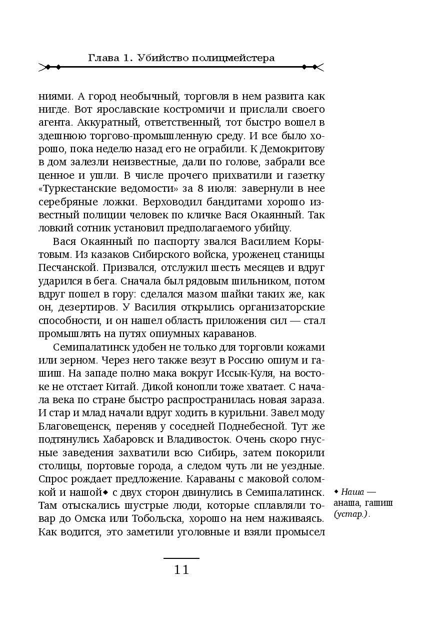 В Семипалатинске зарезан полицмейстер. По горячим следам преступление раскрыто, убийца застрелен при аресте. Дело сдано в архив. Однако военный разведчик Николай Лыков-Нефедьев подозревает, что следствию подсунули подставную фигуру. На самом деле полицмейстера устранили агенты британской резидентуры, которых он сильно прижал. А свалили на местных уголовников... Николай сообщил о своих подозрениях в Петербург. Он предложил открыть новое дознание втайне от местных властей. По его предложению в город прибыл чиновник особых поручений Департамента полиции коллежский советник Лыков. Отец с сыном вместе ловят в тихом Семипалатинске подлинных убийц. А резидент в свою очередь готовит очередную операцию. Ее жертвой должен стать подпоручик Лыков-Нефедьев...