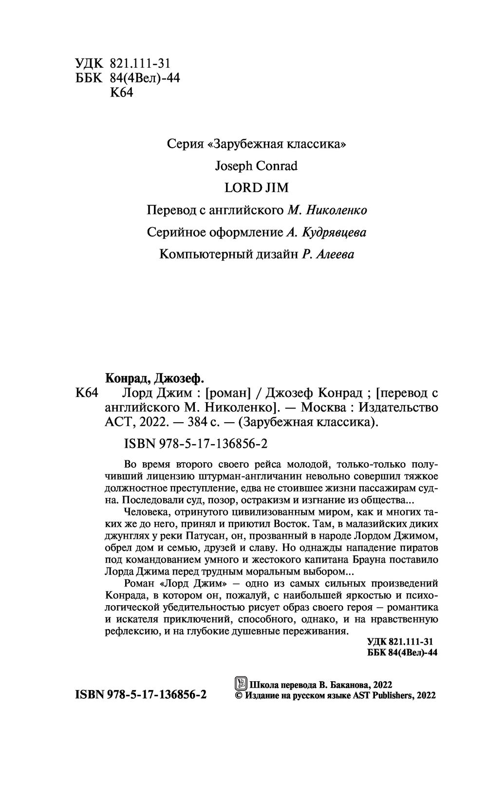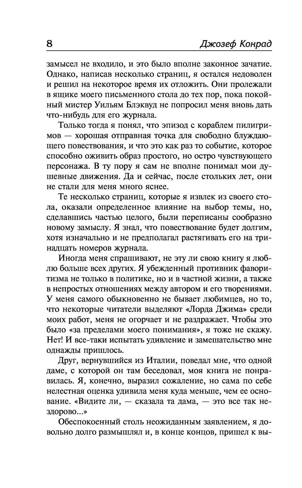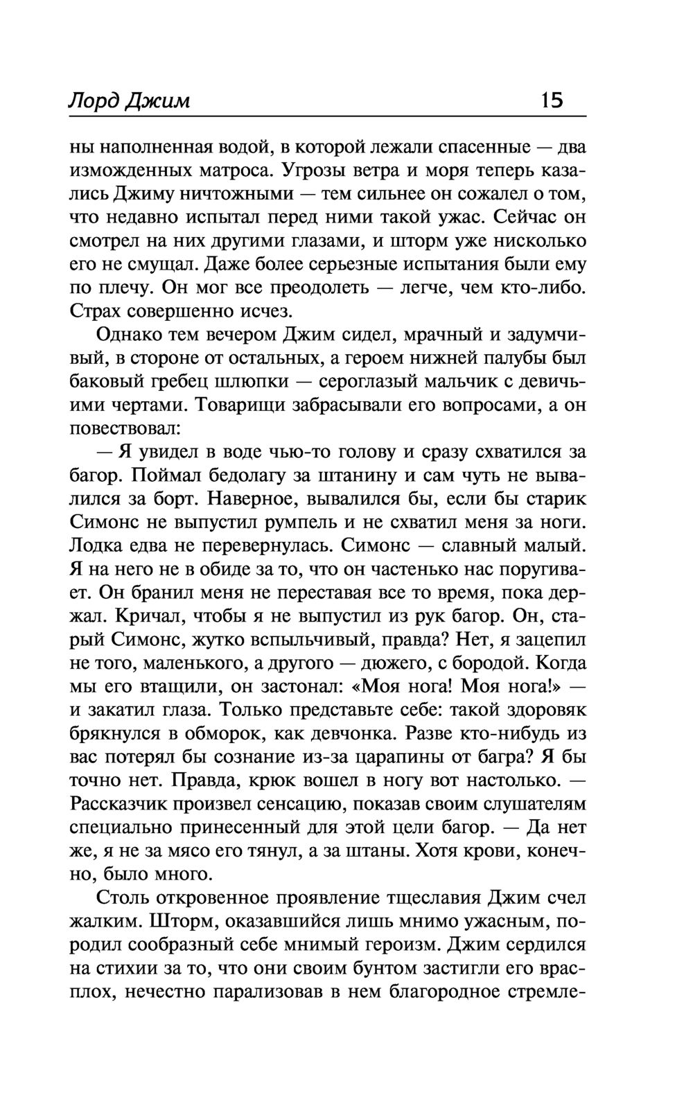 Роман "Лорд Джим" – одно из самых сильных произведений Конрада, в котором он, пожалуй, с наибольшей яркостью и психологической убедительностью рисует образ своего героя – романтика и искателя приключений, способного, однако, и на нравственную рефлексию, и на глубокие душевные переживания.