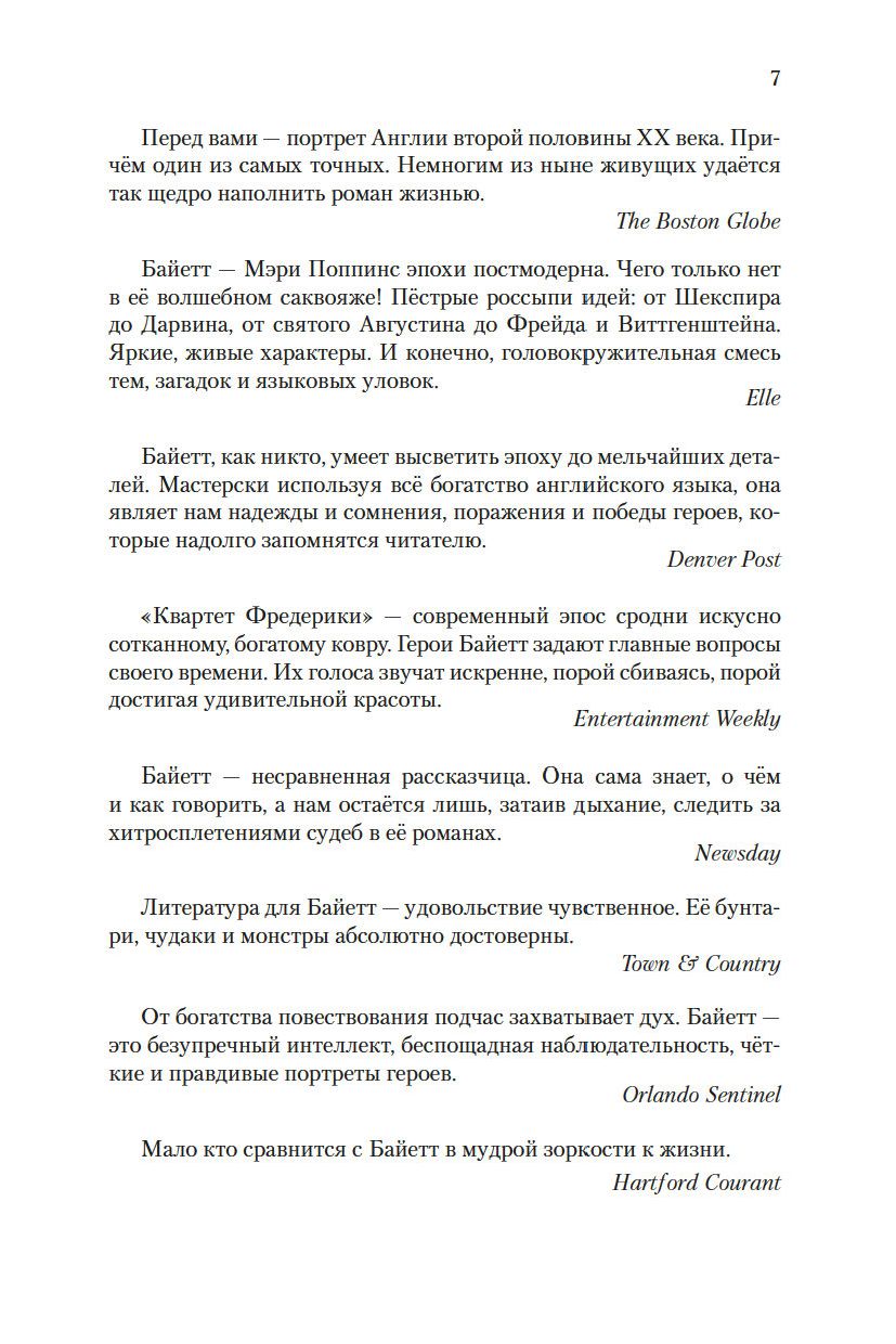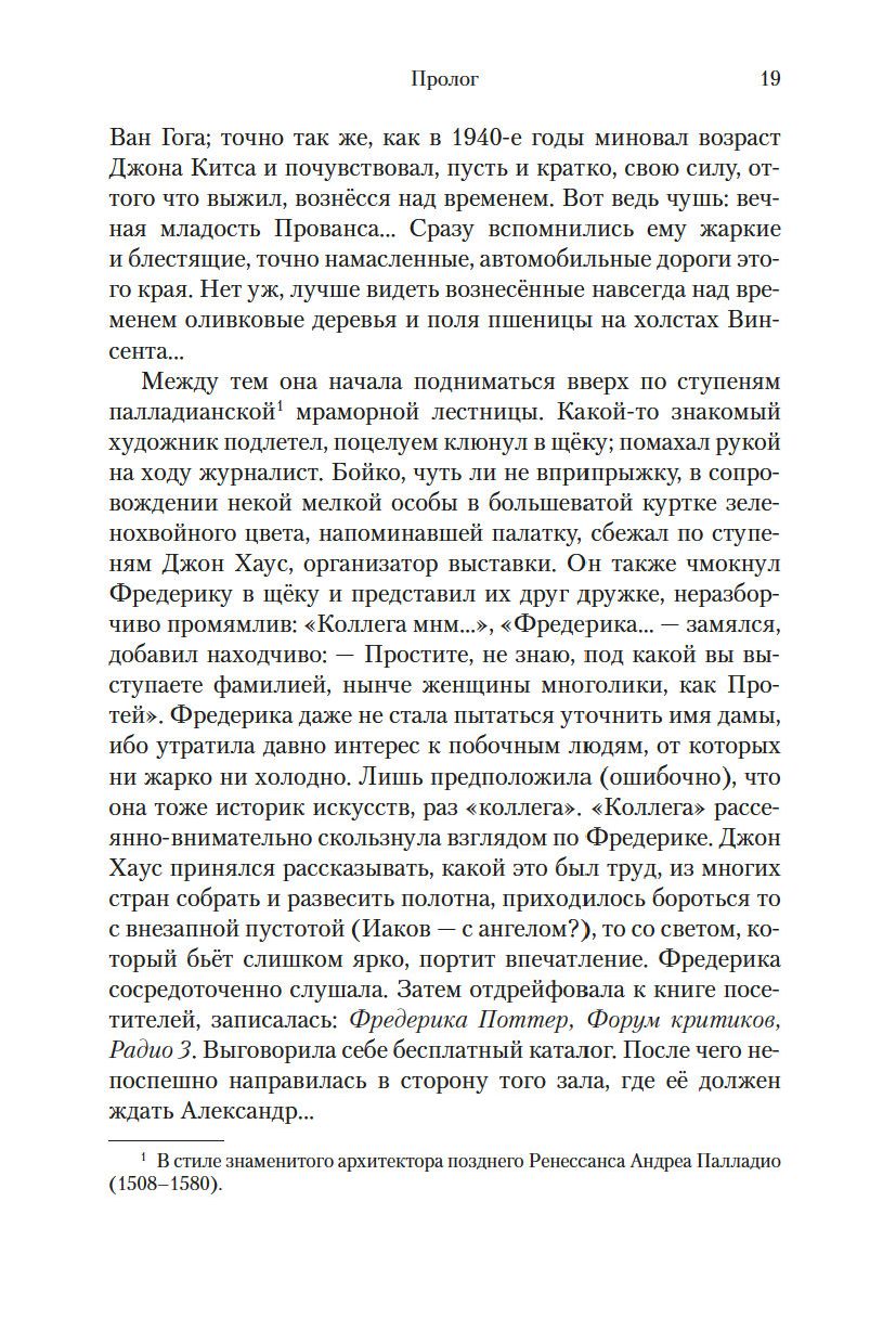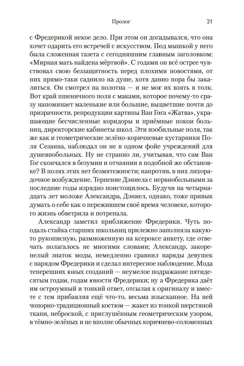 Итак, Фредерика Поттер начинает учиться в Кембридже, неистово жадная до знаний, до самостоятельной, взрослой жизни, до любви, – ровно в тот момент истории, когда традиционно изолированная Британия получает массированную прививку европейской культуры и начинает необратимо меняться. Пока ее старшая сестра Стефани жертвует учебой и научной карьерой ради семьи, а младший брат Маркус оправляется от нервного срыва, Фредерика, в противовес Моне и Малларме, настаивавшим на "счастье постепенного угадывания предмета", предпочитает называть вещи своими именами. И ни Фредерика, ни Стефани, ни Маркус не догадываются, какая в будущем их всех ждет трагедия...