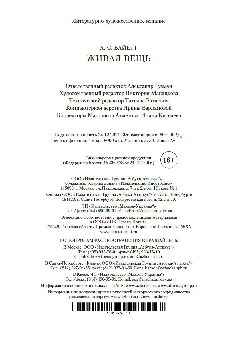 | Изготовитель | ООО "Издательство "Иностранка". 109017, РФ, г. Москва, ул. Пятницкая, 41 |