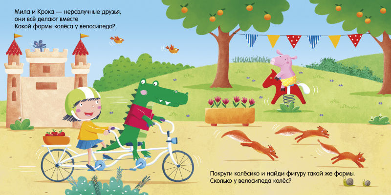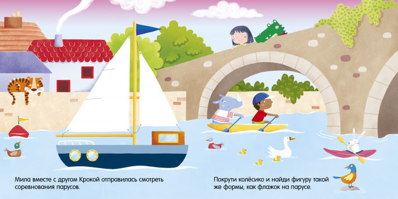 Здания, машинки, вывески на магазинах помогут выучить цвета и формы, а яркие картинки не дадут заскучать.