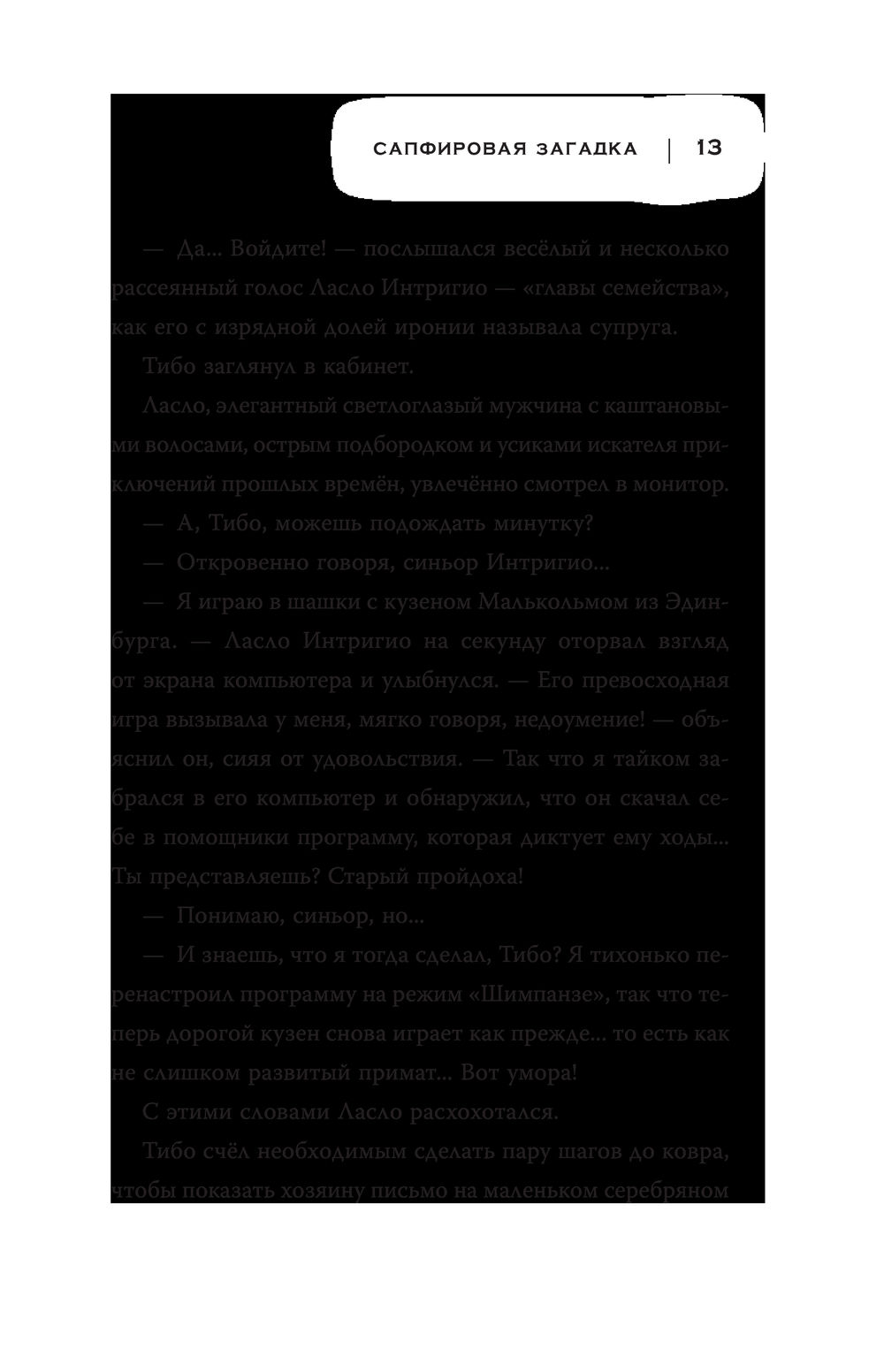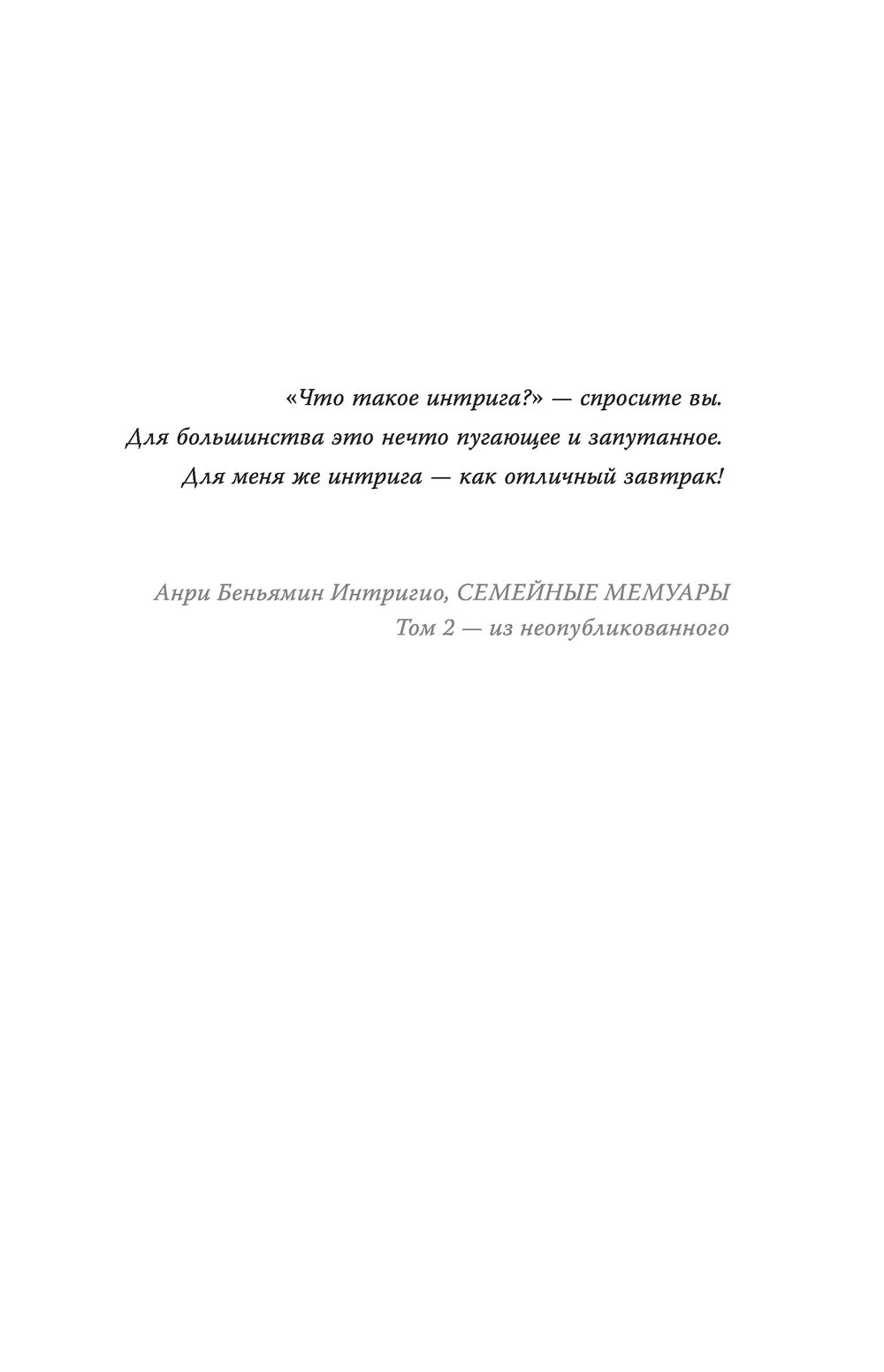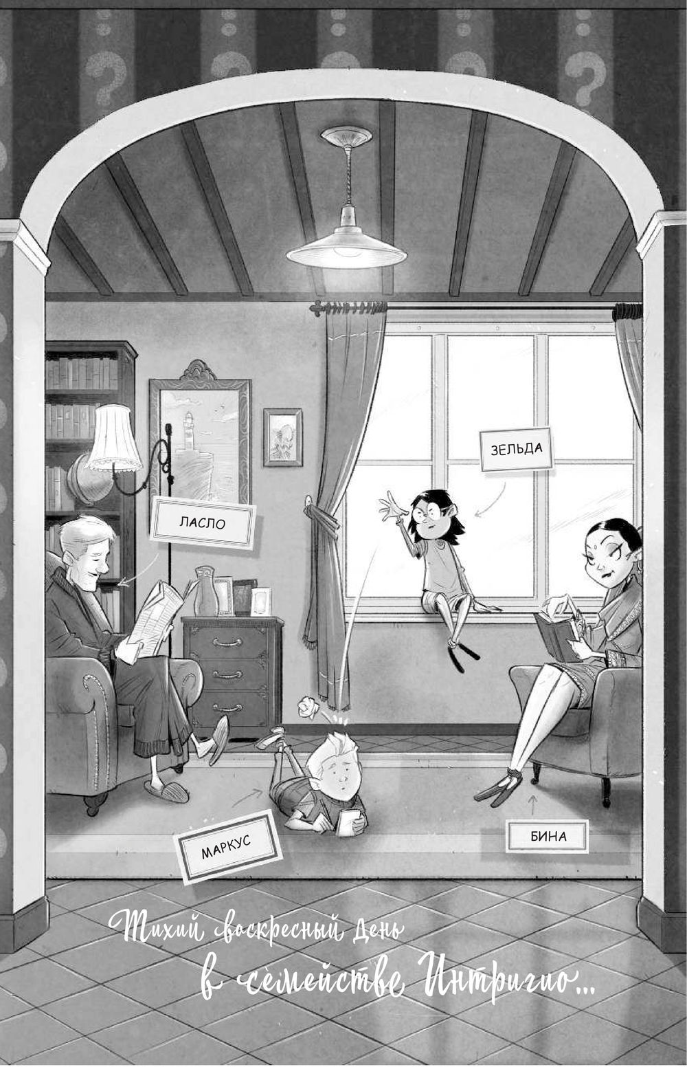 Добро пожаловать в уютный особняк семейства Интригио! Тихим воскресным утром в их почтовый ящик падает необычный жёлтый конверт, и шпионская семейка отправляется в Париж на поиски исчезнувшего бесценного сапфира. Маскировка, загадочные реликвии и уникальные суперспособности Интригио помогут им раскрыть тайный заговор. Захватывающий детектив от автора популярного цикла "Коты‑детективы" Алессандро Гатти и создателя мирового бестселлера "Секретные дневники Улисса Мура" Пьердоменико Баккаларио.