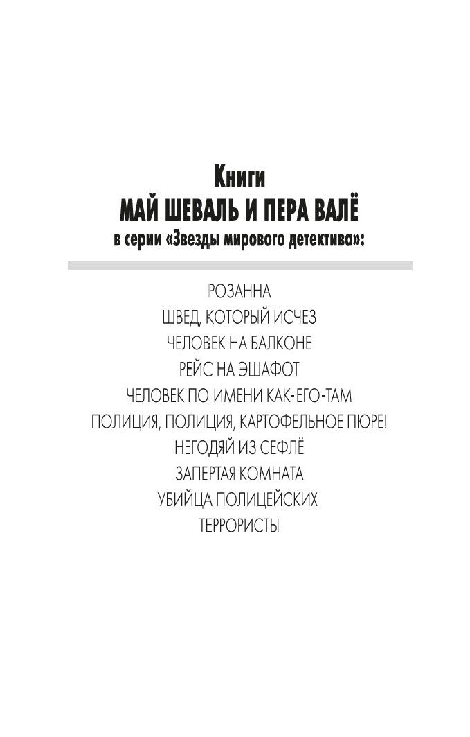 Май Шеваль и Пер Валё – шведские журналисты, авторы знаменитого цикла романов о комиссаре Мартине Беке, удостоенных престижных литературных наград как в Европе, так и в Америке.