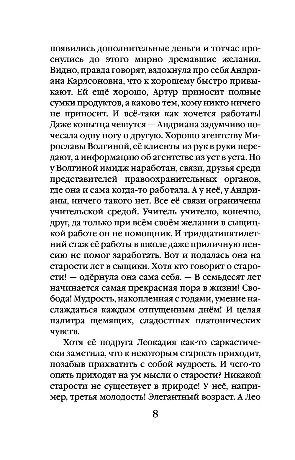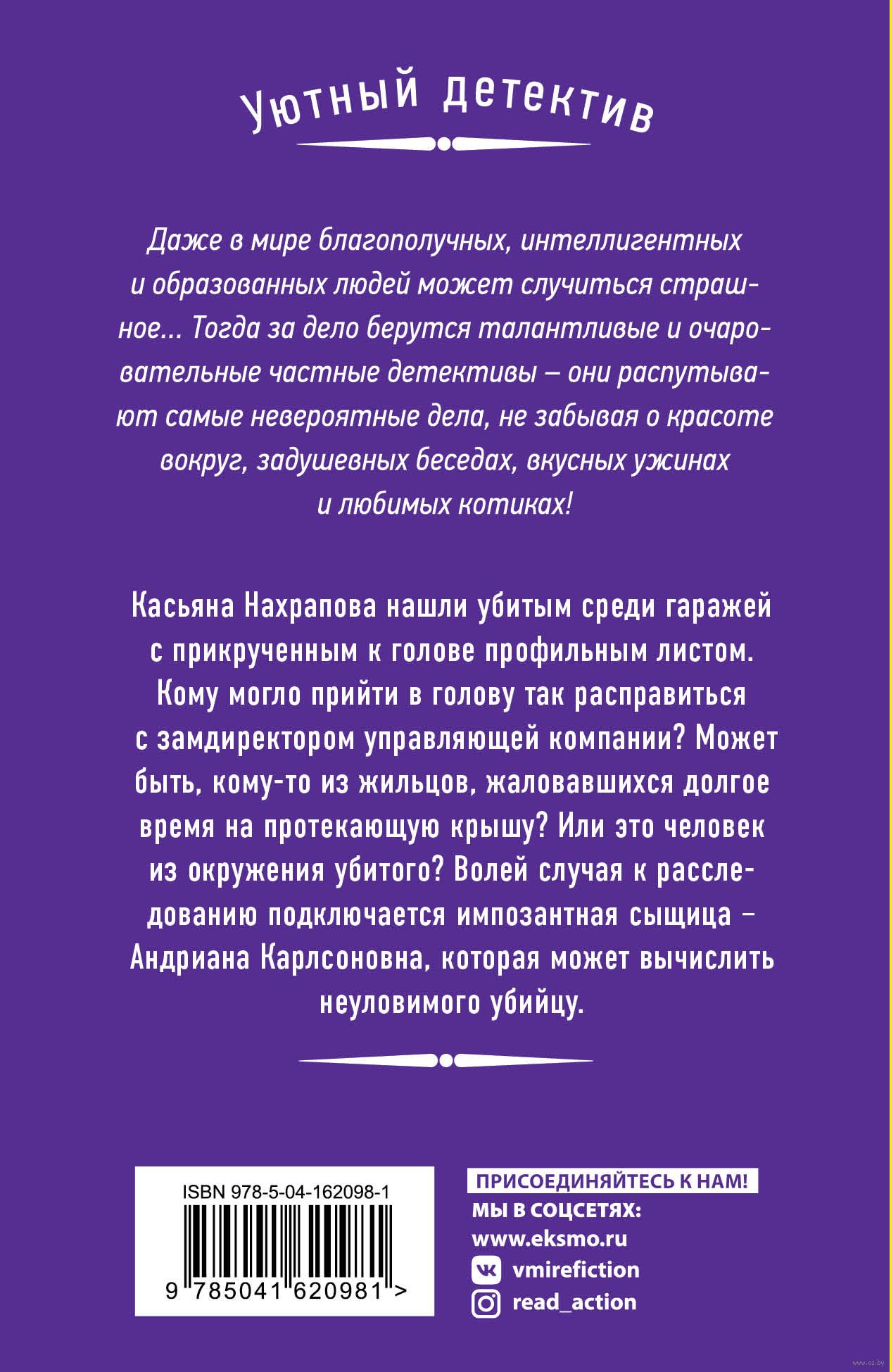 Касьяна Нахрапова нашли убитым среди гаражей с прикрученным к голове профильным листом. Кому могло прийти в голову так расправиться с замдиректором управляющей компании? Может быть, кому-то из жильцов, жаловавшихся долгое время на протекающую крышу? Или это человек из окружения убитого? Волей случая к расследованию подключается импозантная сыщица – Андриана Карлсоновна, которая может вычислить неуловимого убийцу.