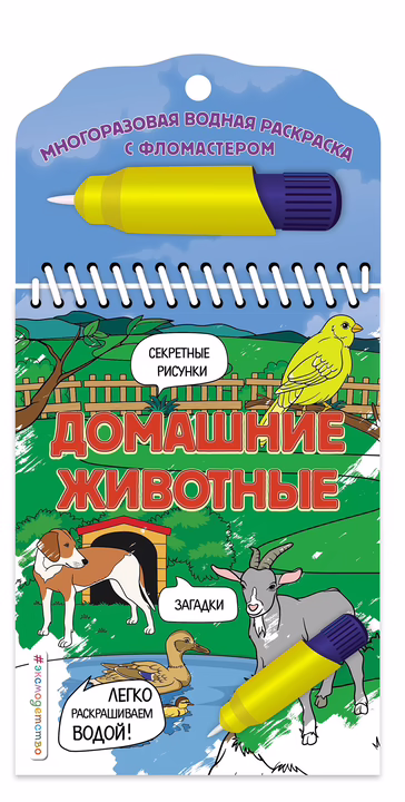 Во-первых, вам больше не нужны цветные карандаши или фломастеры. Просто наполните специальный фломастер, входящий в комплект, водой и проведите им по страницам – они сразу же станут цветными. Поэтому раскраской смогут пользоваться даже самые маленькие дети, только начинающие держать ручку.