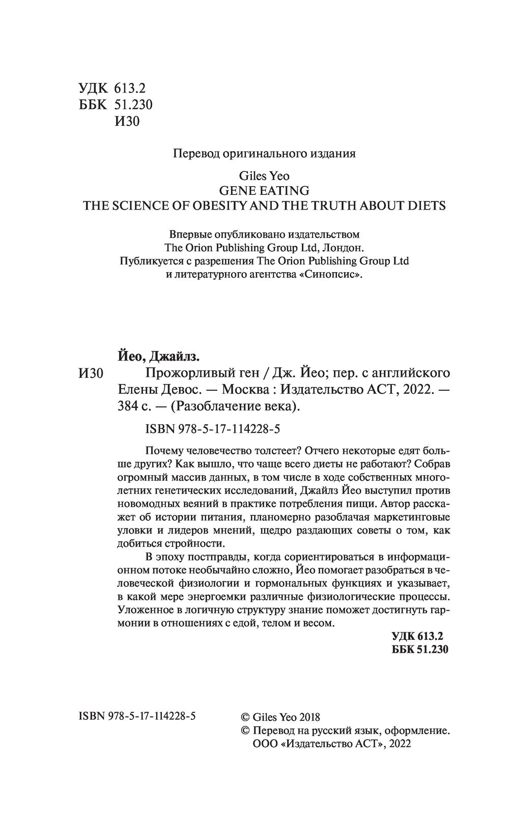 Условия бонусной программы| Название в оригинале | Gene Eating. The Science of Obesity and the Truth About Diets |