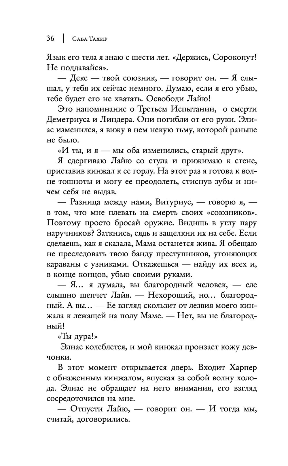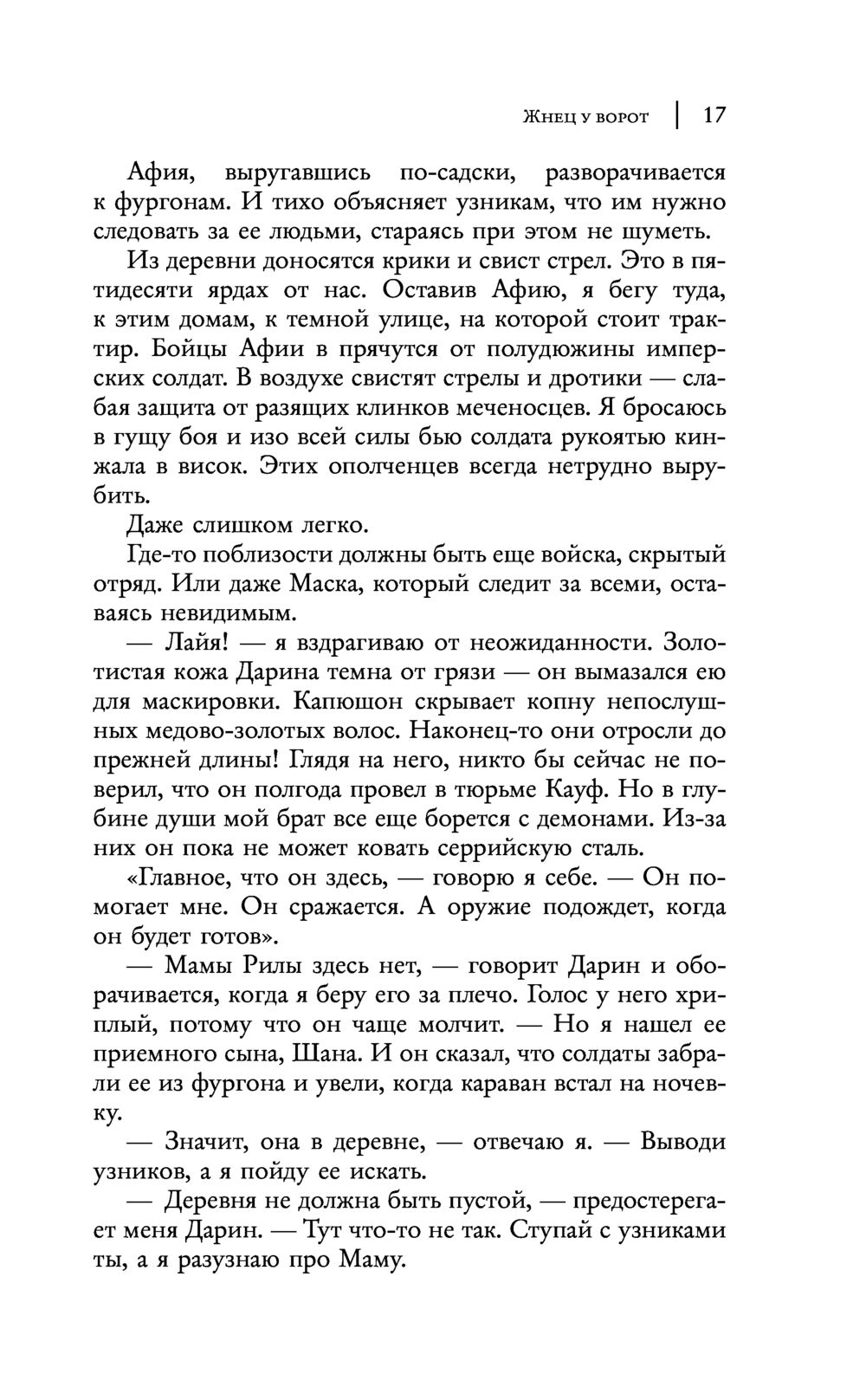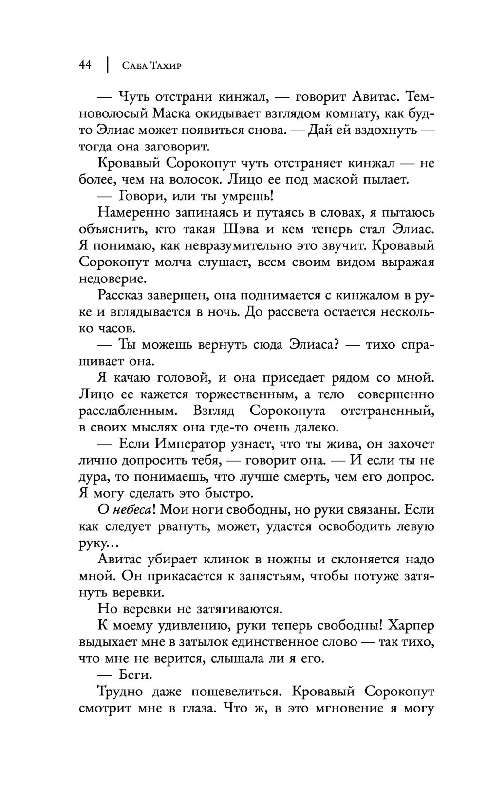 Элиас – один из лучших солдат академии, но втайне он мечтает о другой жизни, о свободе. Когда пути Лайи и Элиаса пересекаются, они понимают, что связаны судьбой. Выбор, который они сделают, изменит будущее всей Империи. Война приближается к пределам Империи. Война вот-вот начнется внутри нее самой.