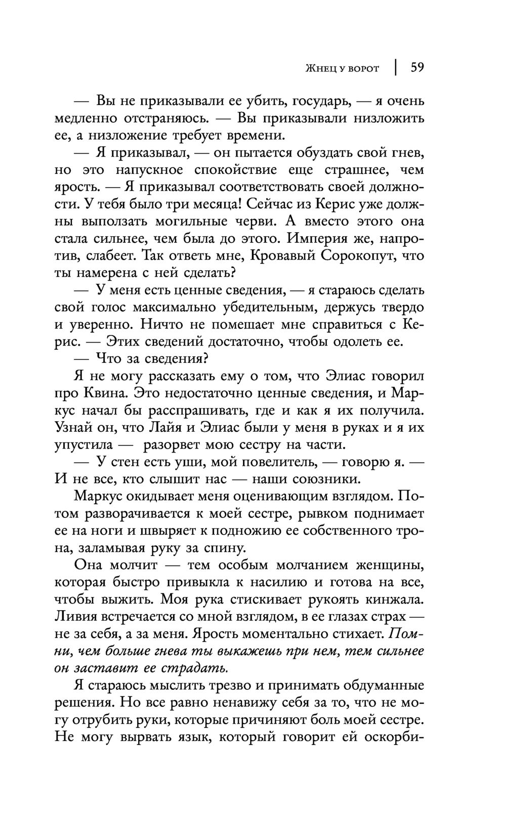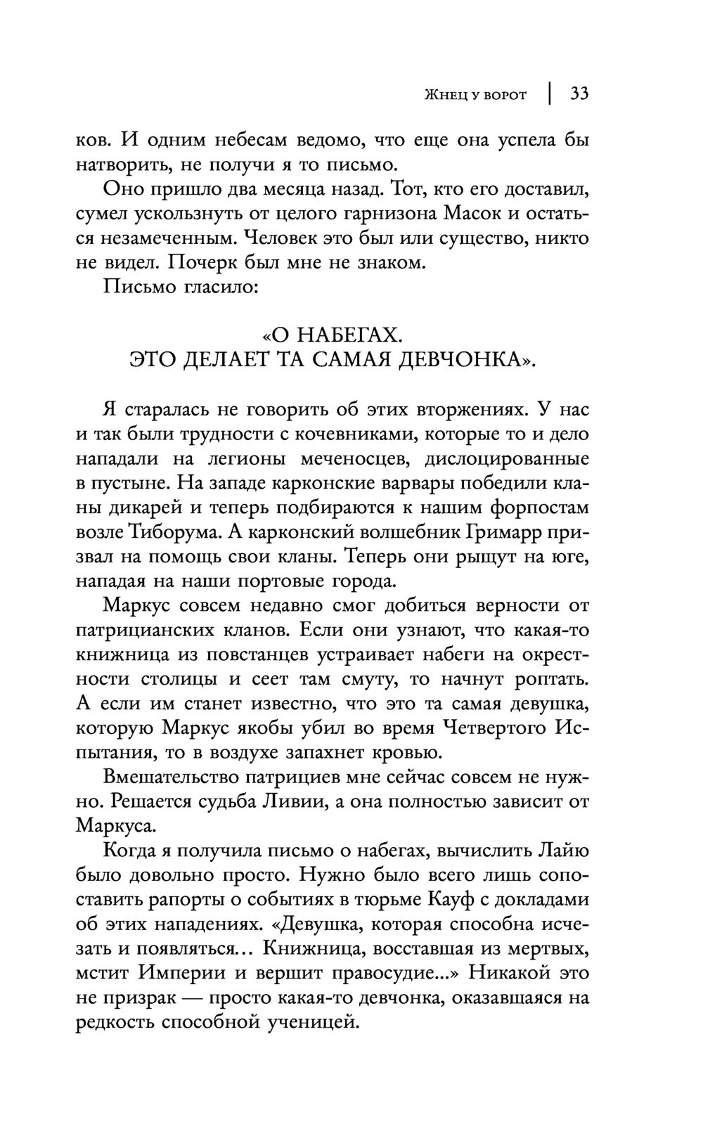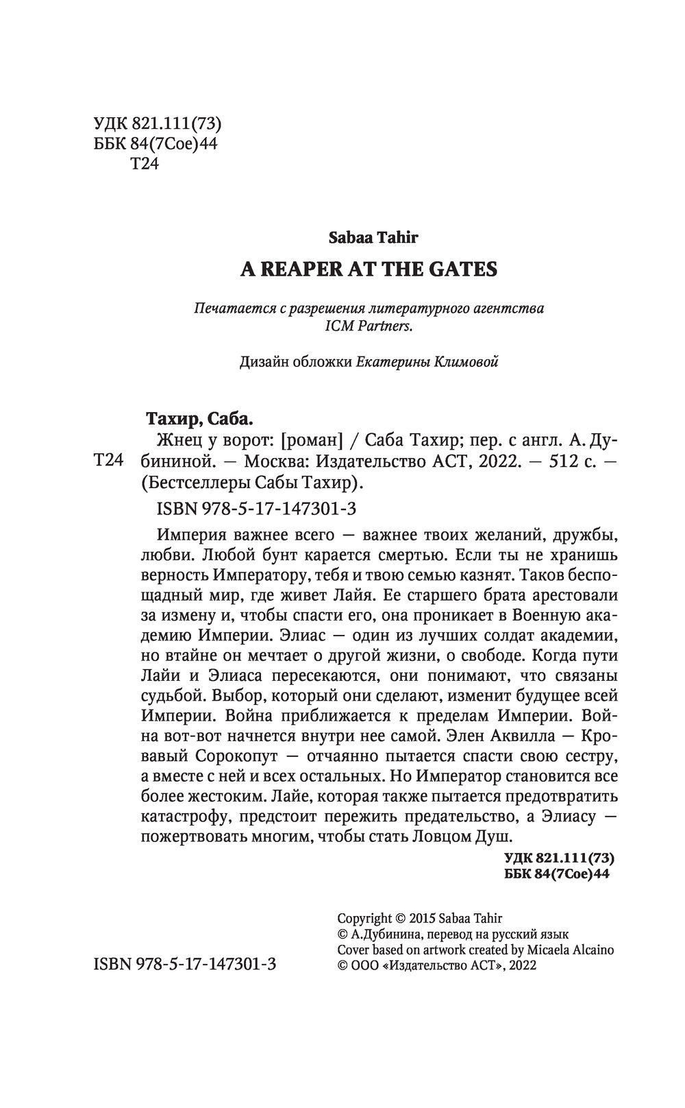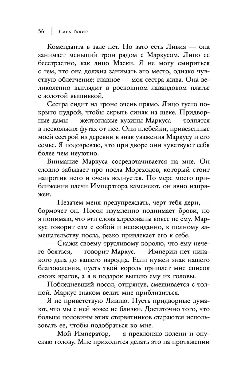 Элиас – один из лучших солдат академии, но втайне он мечтает о другой жизни, о свободе. Когда пути Лайи и Элиаса пересекаются, они понимают, что связаны судьбой. Выбор, который они сделают, изменит будущее всей Империи. Война приближается к пределам Империи. Война вот-вот начнется внутри нее самой.