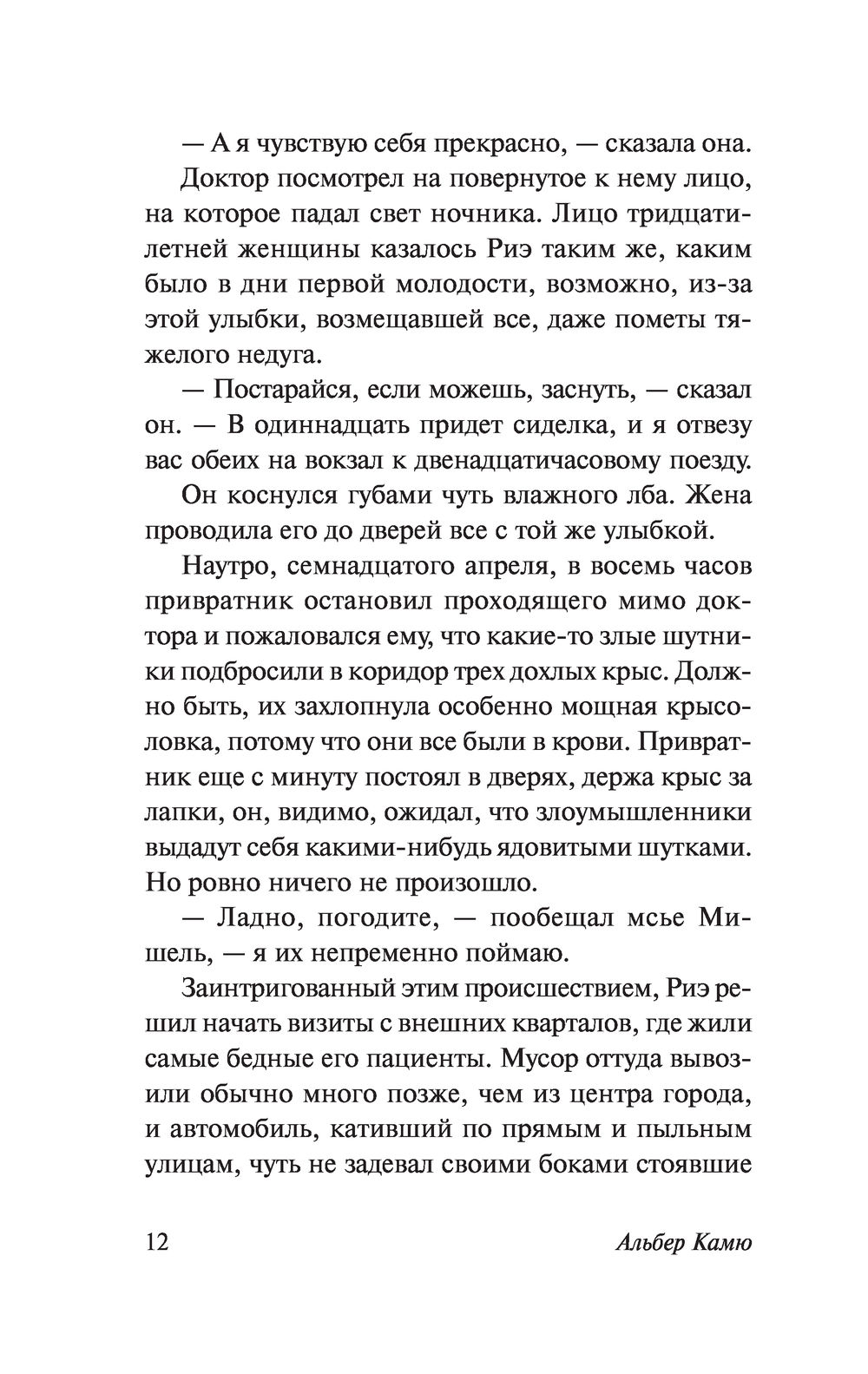 "Чума" Альбера Камю – это роман-притча. В город приходит страшная болезнь – и люди начинают умирать. Отцы города, скрывая правду, делают жителей заложниками эпидемии. И каждый стоит перед выбором: бороться за жизнь, искать выход или смириться с господством чумы, с неизбежной смертью. Многие литературные критики "прочитывают" в романе события во Франции в период фашистской оккупации.
