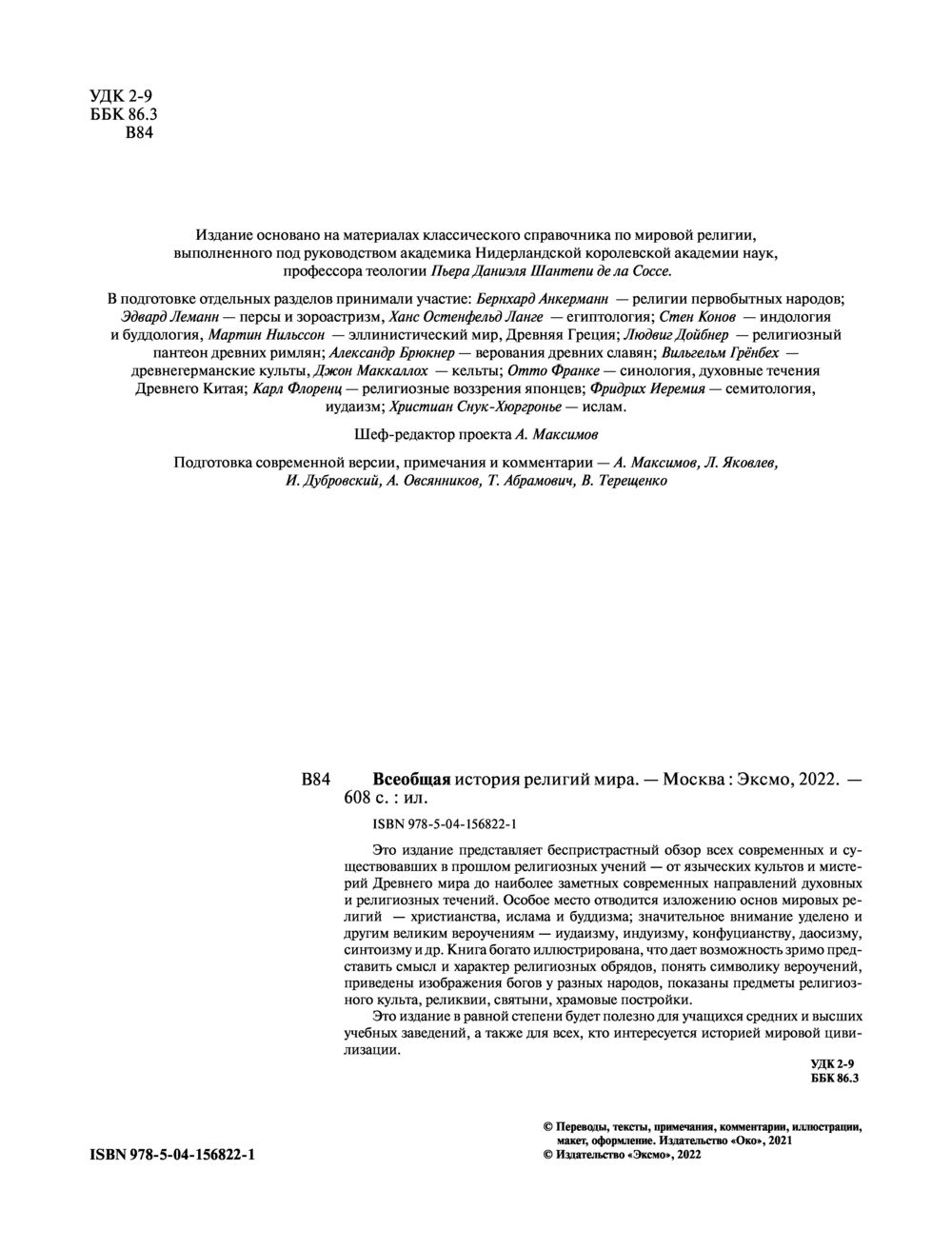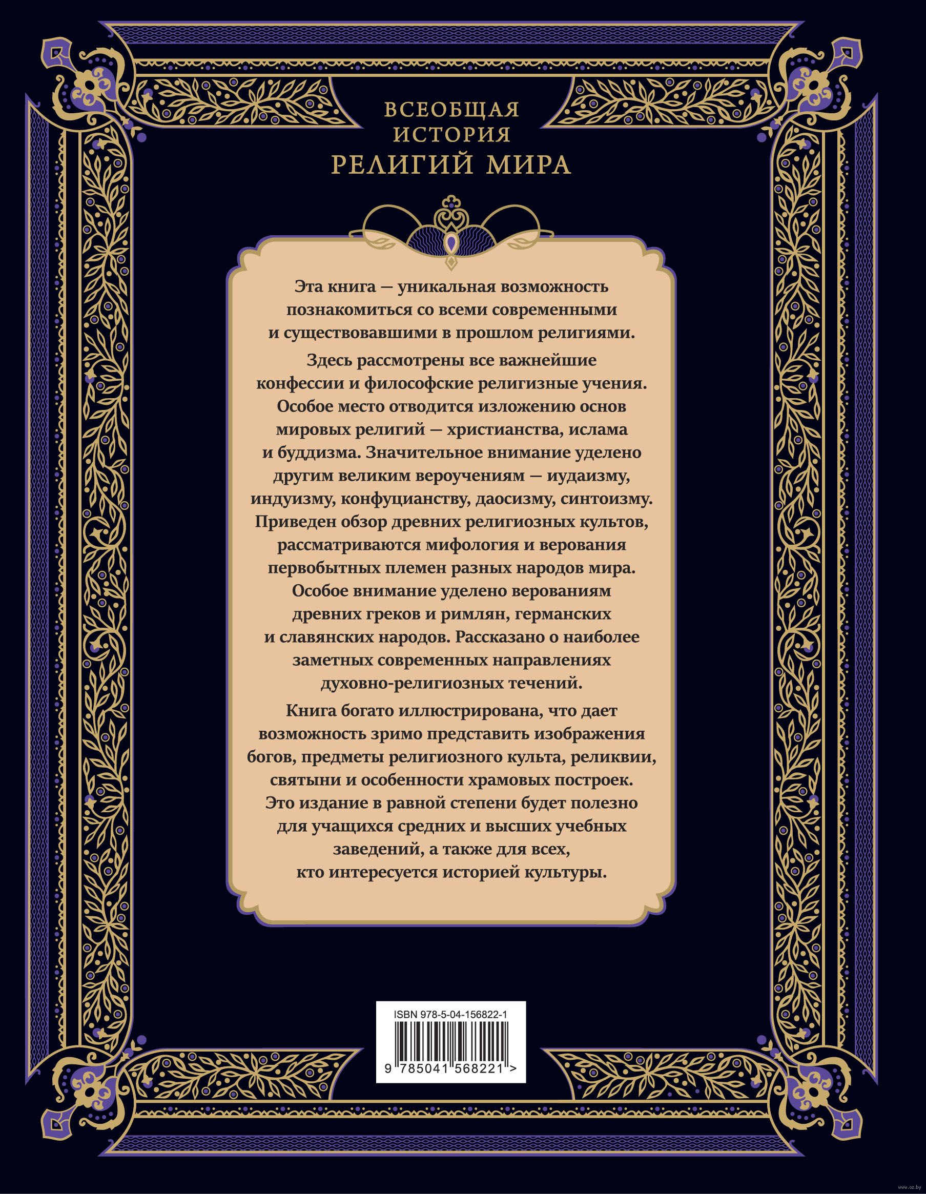 Это издание представляет беспристрастный обзор всех современных и существовавших в прошлом религиозных учений – от языческих культов и мистерий Древнего мира до наиболее заметных современных направлений духовных и религиозных течений. Особое место отводится изложению основ мировых религий – христианства, ислама и буддизма; значительное внимание уделено и другим великим вероучениям – иудаизму, индуизму, конфуцианству, даосизму, синтоизму и др.
