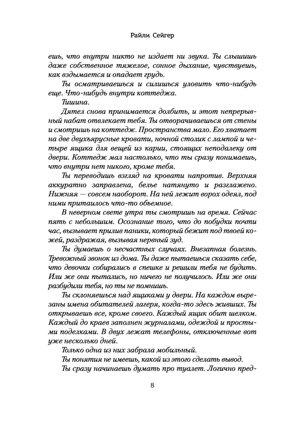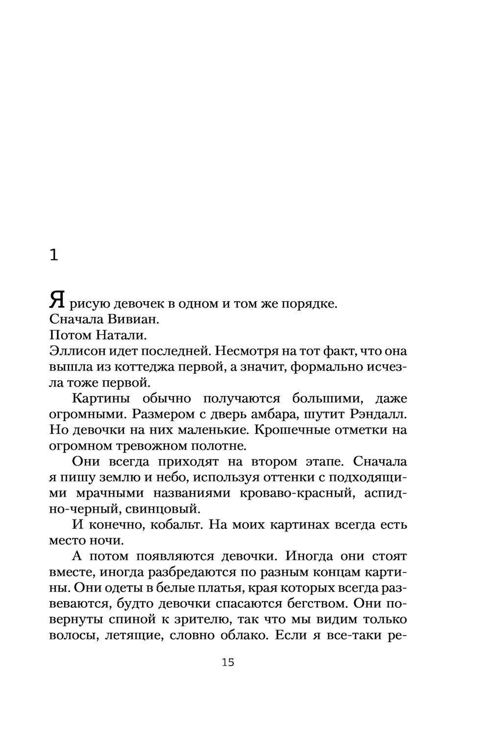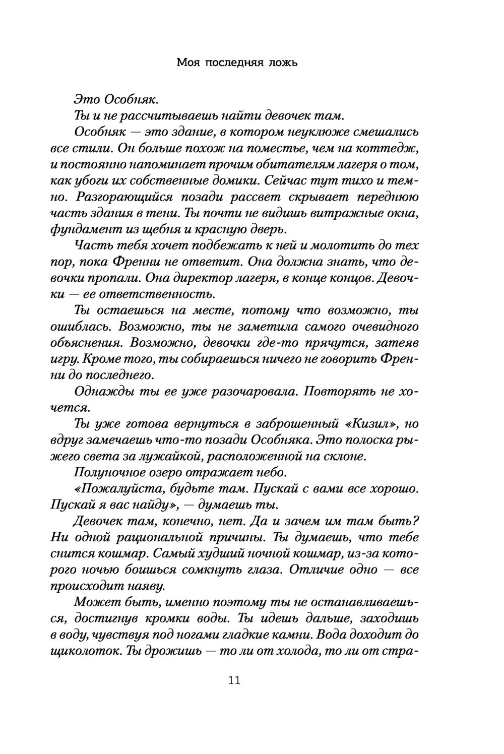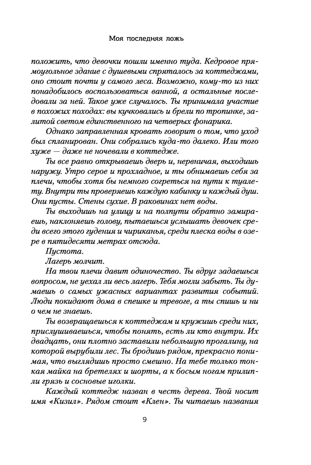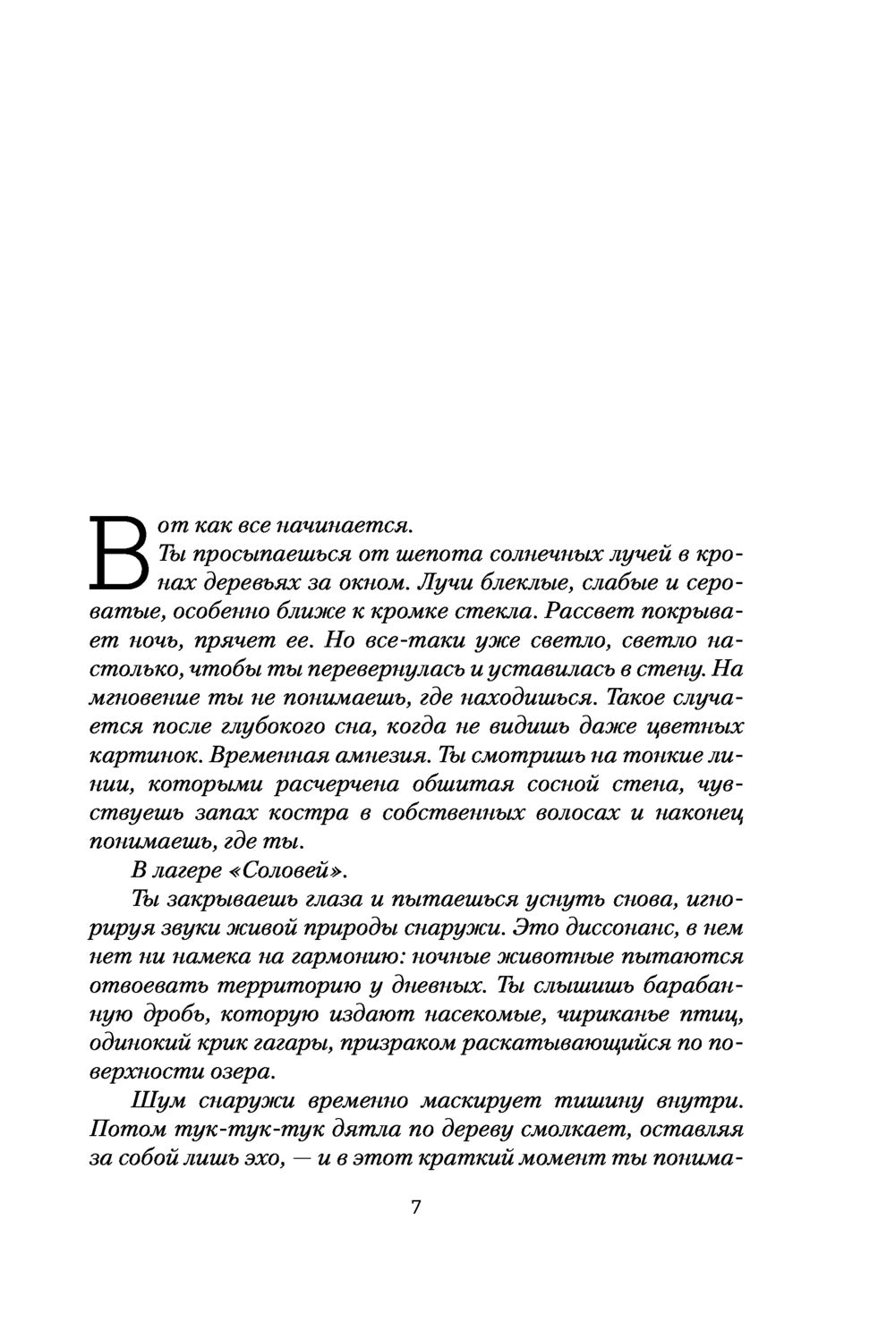 Оставляю отзывы реже, чем хотелось, но в данном случае считаю просто обязательным привлечь внимание к этой книге и автору в целом. Нетривиальный, яркий триллер-детектив - именно то, что захватывает внимание и не отпускает до последней страницы. «Проглотила» за день и теперь рекомендую всем и каждому, кто хочет отвлечься и сконцентрироваться на чем-то интересном. Сюжет довольно прост: девушка Эмма спустя 15 лет возвращается в лагерь для девочек, однако с одной оговоркой - тогда она была последней, кто увидела трех девушек, с которыми жила, живыми. Расследование зашло в тупик и ничем не закончилось. Конечно же, Эмму это не устроило и она решила узнать о тайне исчезновения подруг. Правда, тайн оказалось значительно больше.. От души рекомендую! Не отпускает.