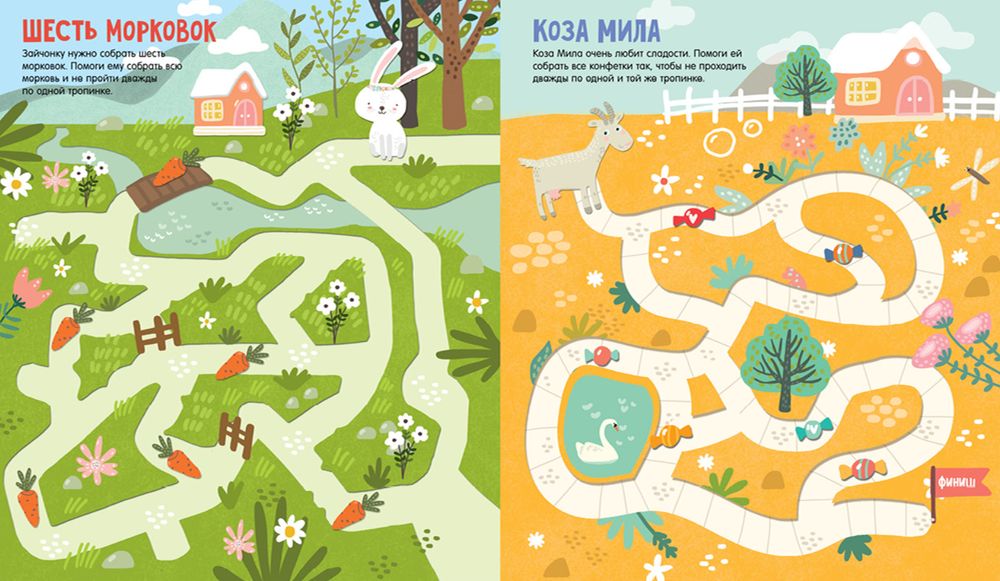 "Большая книга ходилок" – это сборник увлекательных лабиринтов и бродилок. Попробуйте пройти все 79! Вам предстоит прогуляться по саду вместе с единорогами, побывать в космосе и попрыгать по лианам. А если какое-то задание окажется слишком сложным – подсмотрите в ответах.