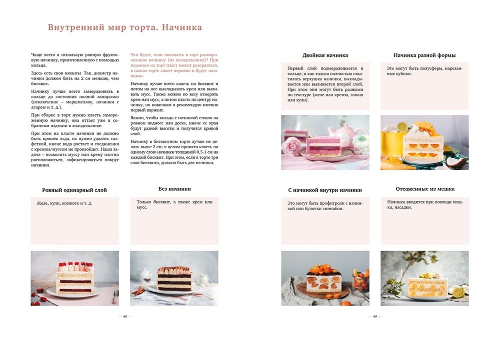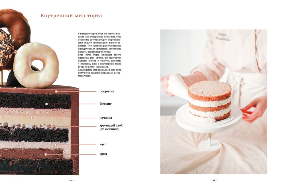Новая книга от автора бестселлера "Магия бисквита"! Алина Ахмадиева раскроет секреты воздушных, сочных и нежных начинок: шоколадного кремю, вишневого кули, желе и конфи, всевозможных компоте; хрустящих слоев: кроканта, пралине, штрейзеля; масляных, заварных и сметанных, кремов для покрытия. Попробуйте их в тортах "Килиманджаро", "Лето, ягоды, шоколад", "Банановый капучино", "Молочная девочка", "Булочка с маком" и многих других. С помощью опытного преподавателя вы без труда освоите базу и сможете на уровне профессионала создавать и собственные торты: вкусные, эффектные, уникальные. Больше никаких секретов! Пошаговые инструкции, базовые рецепты и настоящие хиты школы Алины Ахмадиевой для вашего успеха и настоящих кондитерских чудес. Главное – внутри!