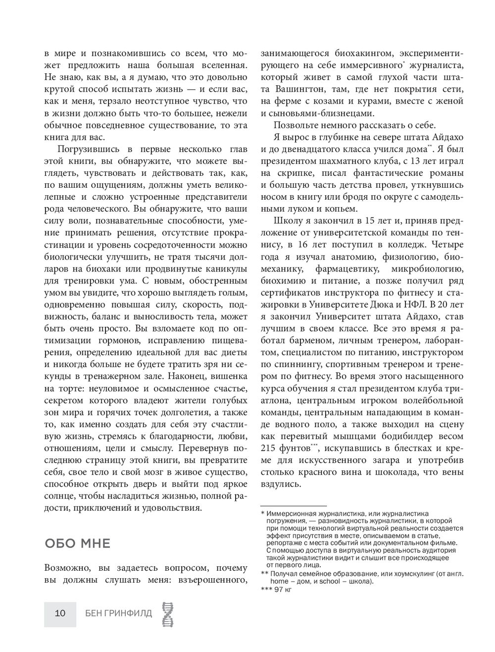 Что, если способность выглядеть и чувствовать себя отлично, а также работать с максимальной эффективностью, – в двух шагах от вас? В идеальном мире вы могли бы иметь все это: полную оптимизацию ума, тела и духа. И это идеальный мир достижим. Известнейший биохакер Бен Гринфилд предлагает пройти полное обновление всех фукнций с помощью простых и доступных средств. Благодаря методам "домашнего биохакинга" вы сможете: