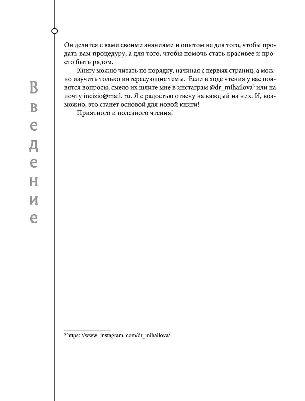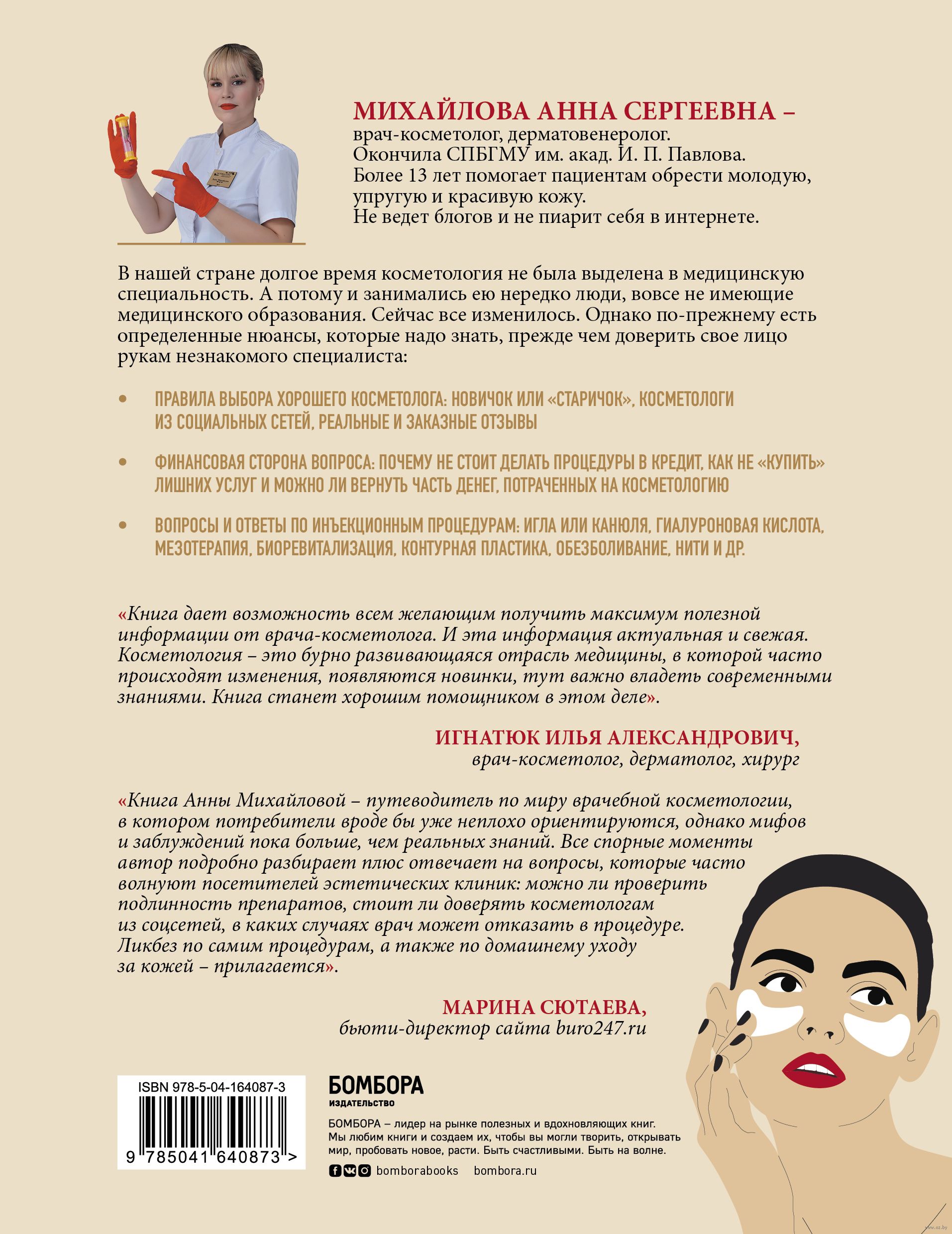 Автор делиться с читателями последними открытиями и методами в косметологии, рассказывает реальные истории пациентов. И хочет уберечь от лишних тревог и волнений, дать знания, которые позволят правильно использовать современные возможности обретения красоты и здоровья. А они сегодня, без сомнения, фантастические!