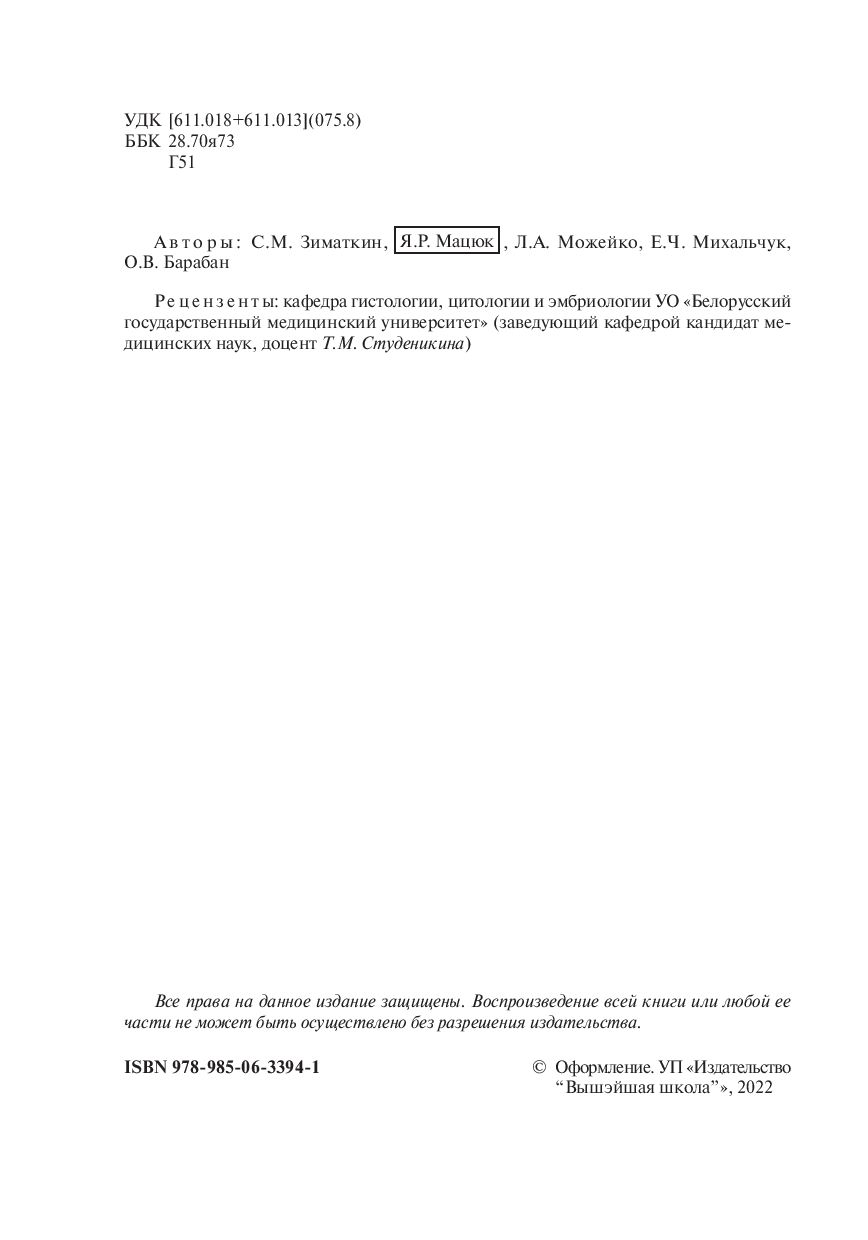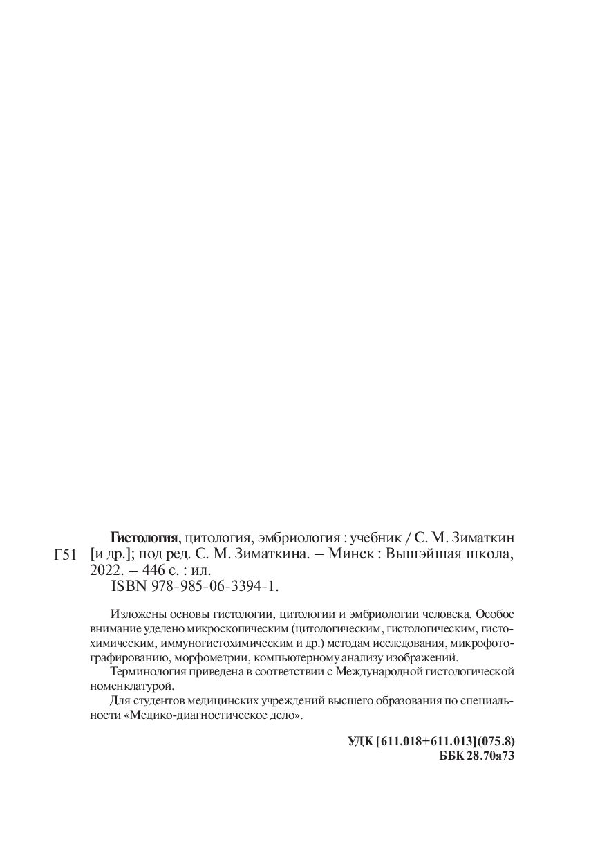 Изложены основы гистологии, цитологии и эмбриологии человека. Особое внимание уделено микроскопическим (цитологическим, гистологическим, гистохимическим, иммуногистохимическим и др.) методам исследования, микрофотографированию, морфометрии, компьютерному анализу изображений. Терминология приведена в соответствии с Международной гистологической номенклатурой.