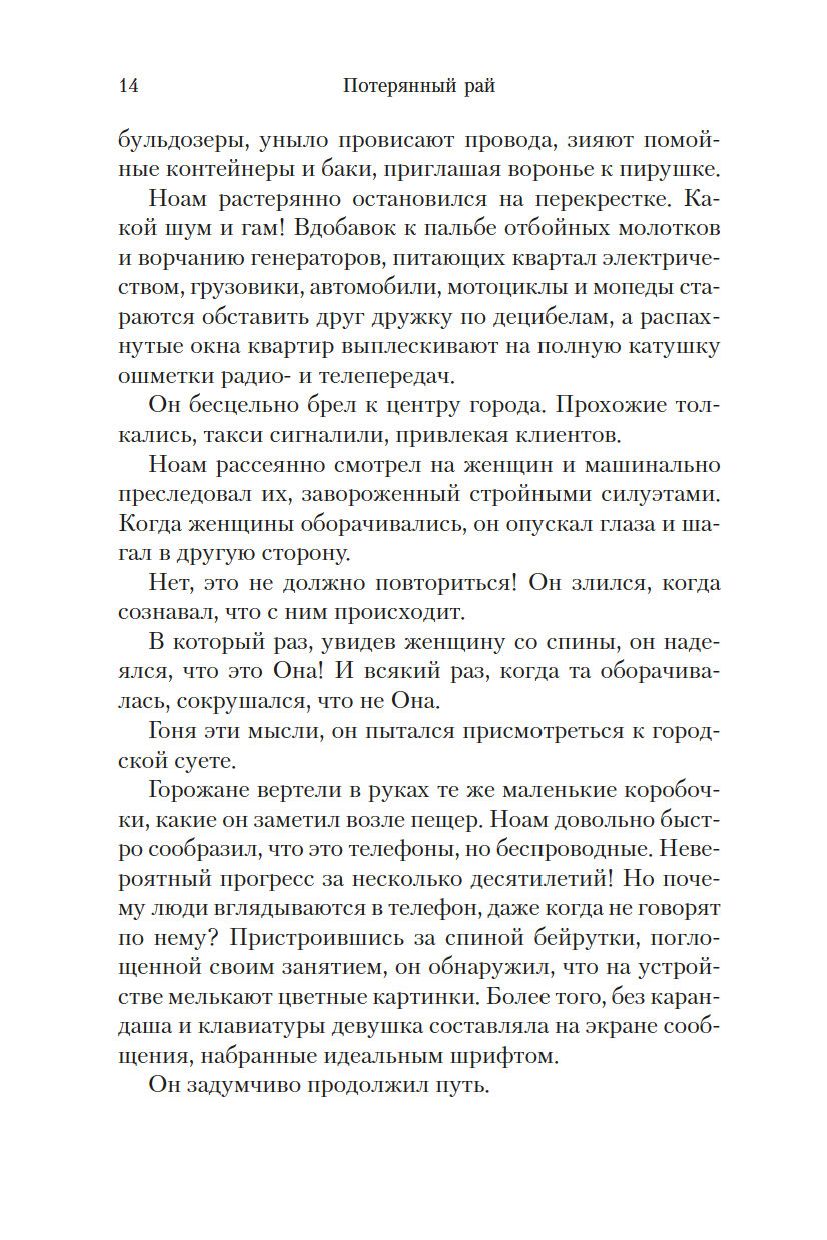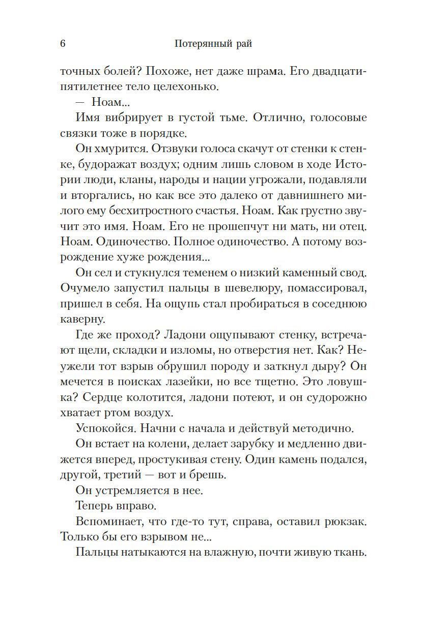 К философско-романтическому эпику о том, как человек проходит насквозь всю мировую историю, Эрик-Эмманюэль Шмитт подступался 30 лет. И вот наконец "Потерянный рай" – первый том грандиозной саги, в которой бессмертному целителю Ноаму еще предстоит увидеть и Вавилонское царство, и Древнюю Грецию, и Ренессанс, и индустриальную революцию. Бессмертие превращает человека в вечного изгнанника и наделяет острым взглядом: Ноам смотрит на вещи под очень особым углом, и его голос превращает хаос Истории в стройную историю хаоса, где неизбежны глупость и жестокость, но всегда найдется место мудрости и любви.