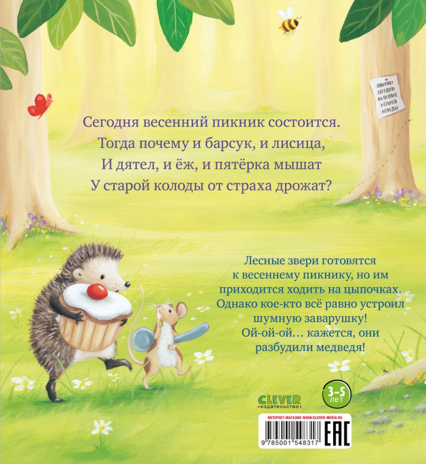 Увлекательная книжка-картинка "Чур, медведя не будить!" с очаровательными иллюстрациями поведает о трудностях зверей, которые собрались устроить пикник, но кое-что большое и страшное им мешает.