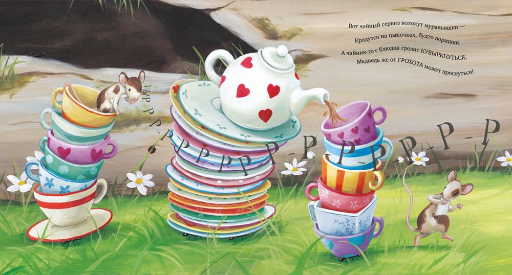 Ни толком стол накрыть, ни потереть ушибленное место, ни повеселиться на славу зверята не могут – очень боятся потревожить медведя. Ведь разбуженный громила очень опасен! И все же никакие предосторожности не спасли друзей от пробуждения медведя. Что они ему скажут, чтобы успокоить, и чем закончится весенний пикник, вы узнаете только в конце книги "Чур, медведя не будить!".