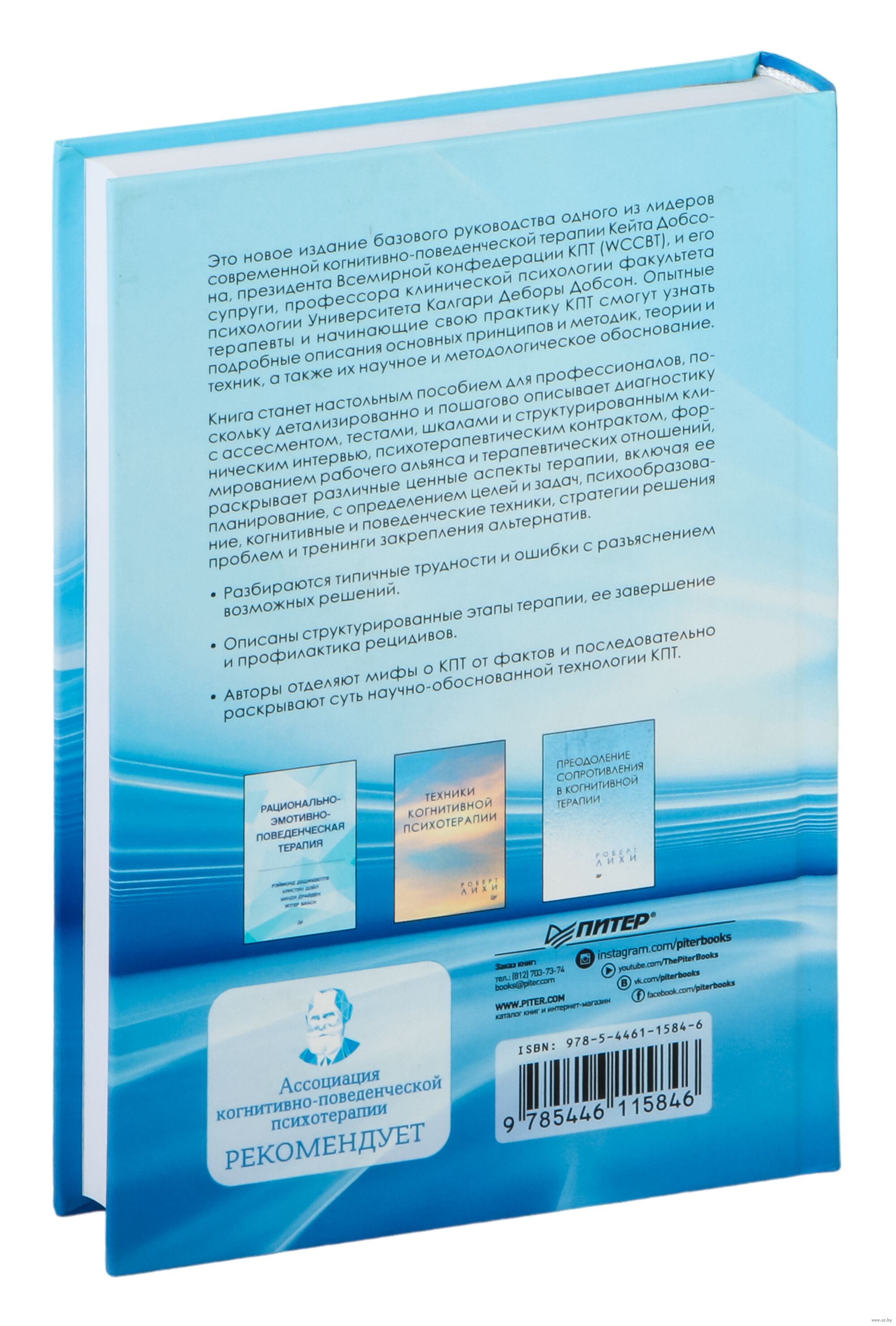 Это новое издание базового руководства одного из лидеров современной когнитивно-поведенческой терапии Кейта Добсона, президента Всемирной конфедерации КПТ (WCCBT) и его супруги, профессора клинической психологии факультета психологии Университета Калгари, Деборы Добсон. Опытные терапевты и начинающие свою практику КПТ смогут узнать подробные описания основных принципов и методик, теории и техник, а также их научное и методологическое обоснование.