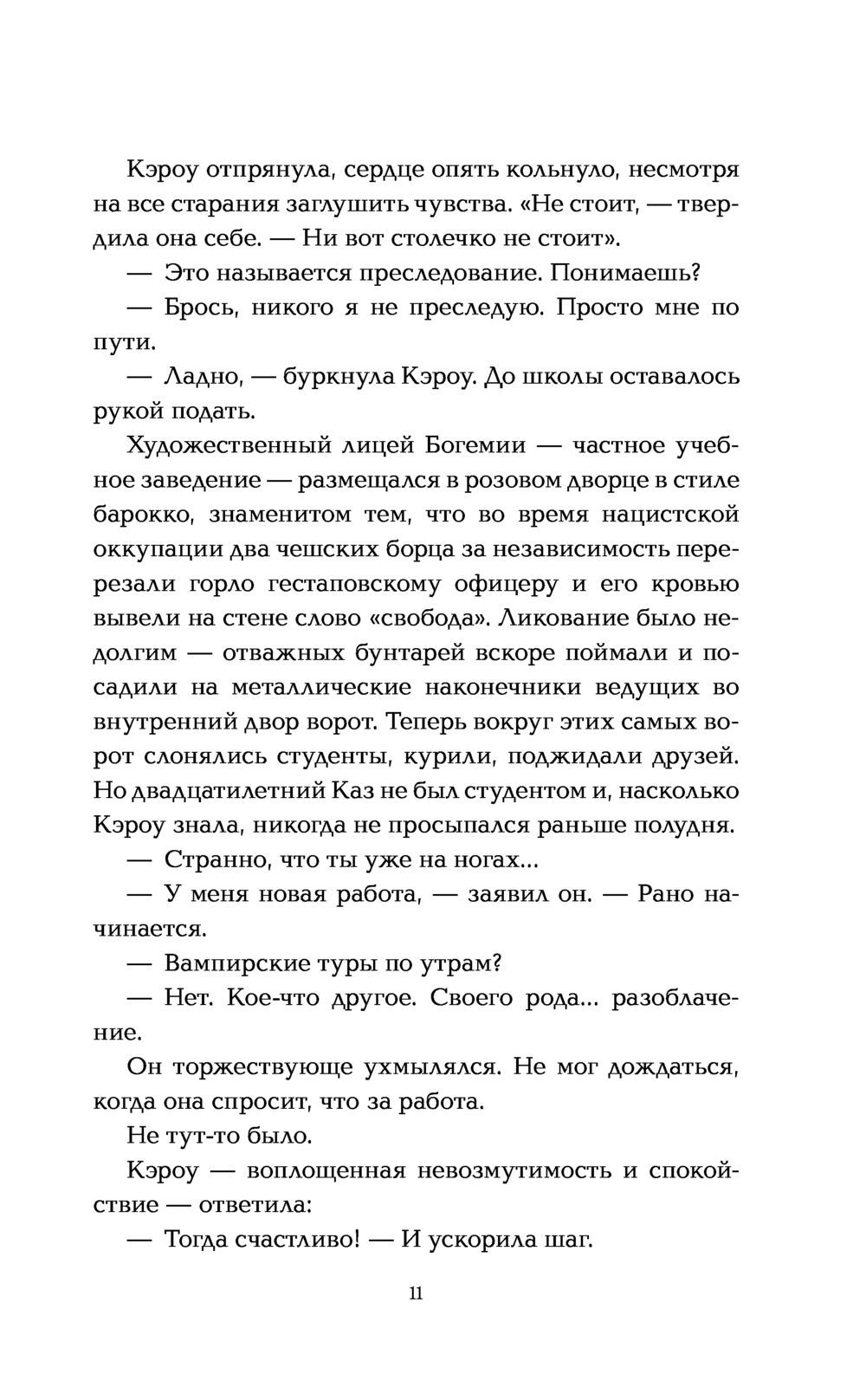 А по запутанным переулкам Праги Кэроу – студентка‑художница, спешит на занятия. Она рисует в альбоме чудовищ – и все думают, что они лишь плод ее воображения. Она говорит на многих языках – но не все из них человеческие. У нее ярко‑голубые волосы – но это не результат модной краски. Кэроу постоянно исчезает по таинственным "поручениям". Кто же она? И какая роль ей предстоит в грядущей войне между Светом и Тьмой?