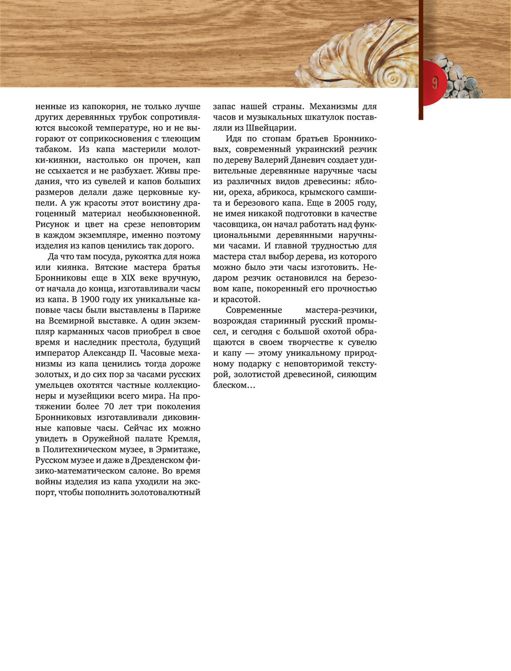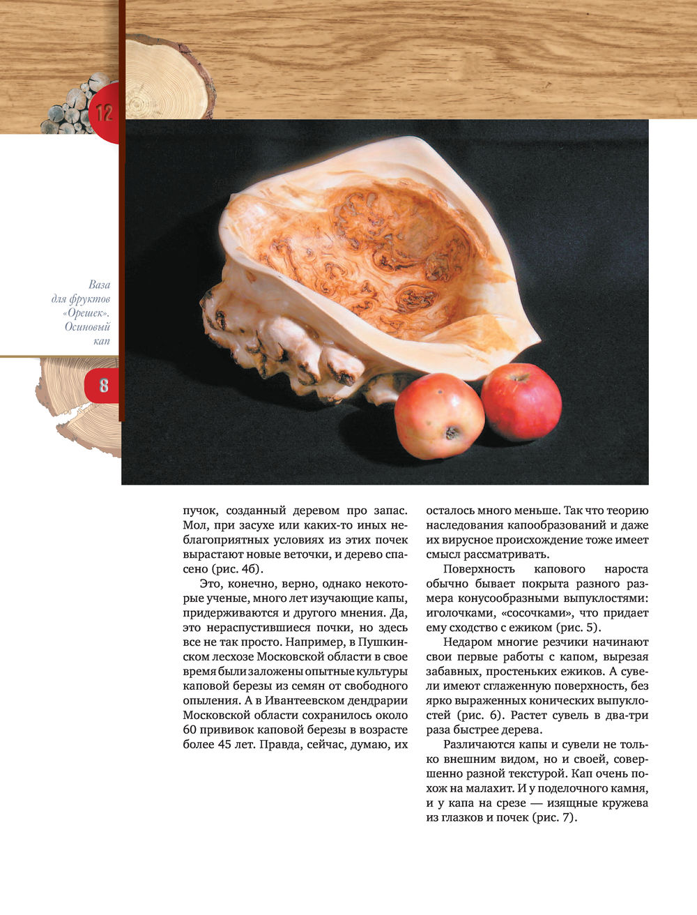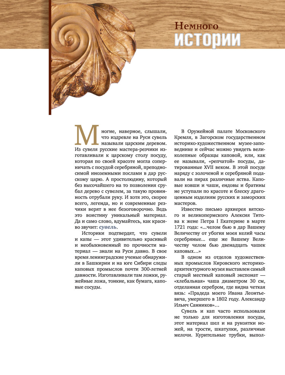 Пособие содержит множество практических советов и маленьких хитростей, основанных на многолетнем профессиональном опыте автора. В книге просто и доступно рассказывается о секретах мастерства, приводятся рекомендации по изготовлению шлифовальных инструментов и приспособлений для художественной обработки сувелей, капов и твердого дерева. Основной упор сделан на практическую сторону работы современными электроинструментами, позволяющими значительно сократить время изготовления декоративно-прикладных изделий из сувеля.