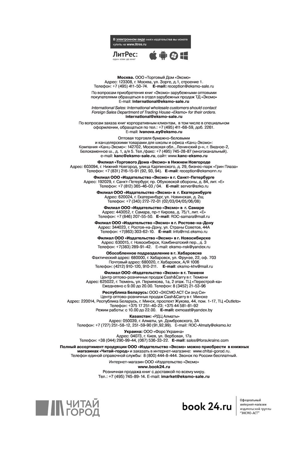 | Изготовитель | ООО "Издательство "Эксмо", 123308, Россия, город Москва, улица Зорге, дом 1, строение 1, этаж 20, каб 2013 |