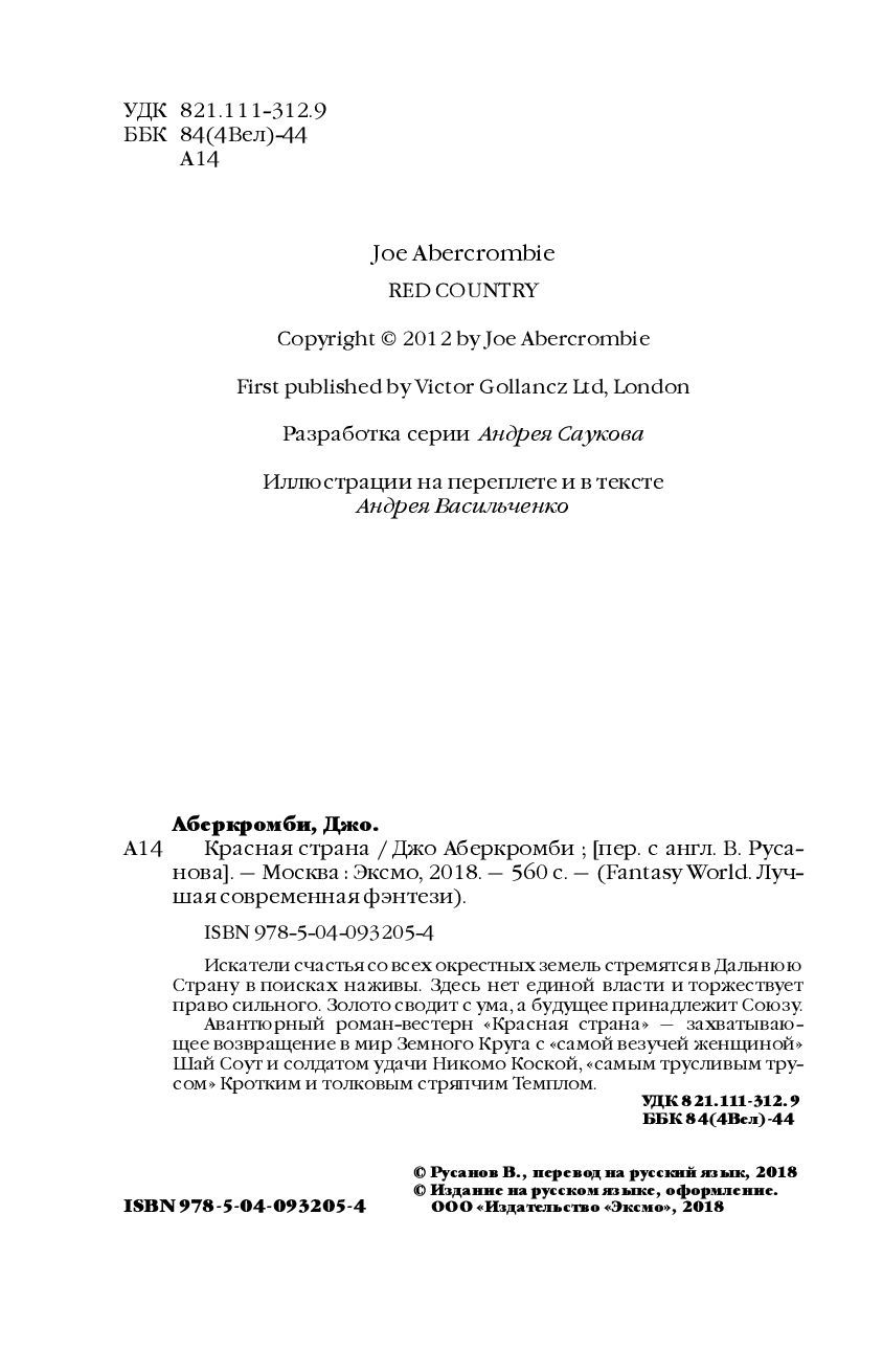 Авантюрный роман-вестерн "Красная страна" – захватывающее возвращение в мир Земного Круга с "самой везучей женщиной" Шай Соут и солдатом удачи Никомо Коской, "самым трусливым трусом" Кротким и толковым стряпчим Темплом.