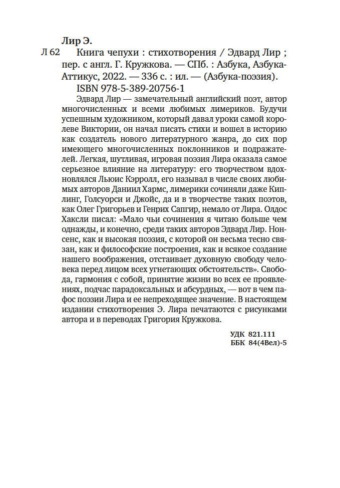 В настоящем издании стихотворения Э. Лира печатаются с рисунками автора и в переводах Григория Кружкова.