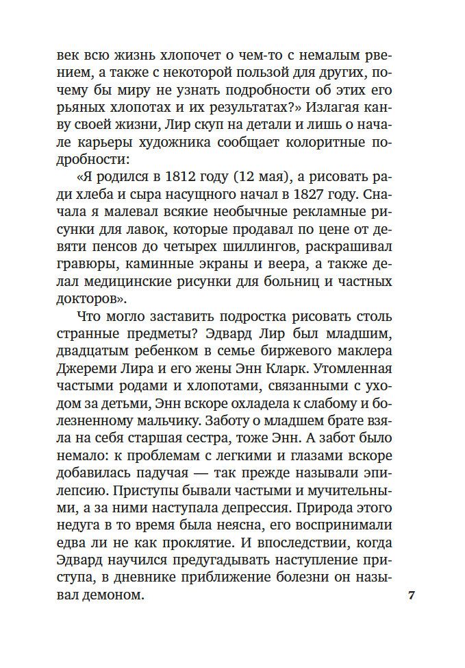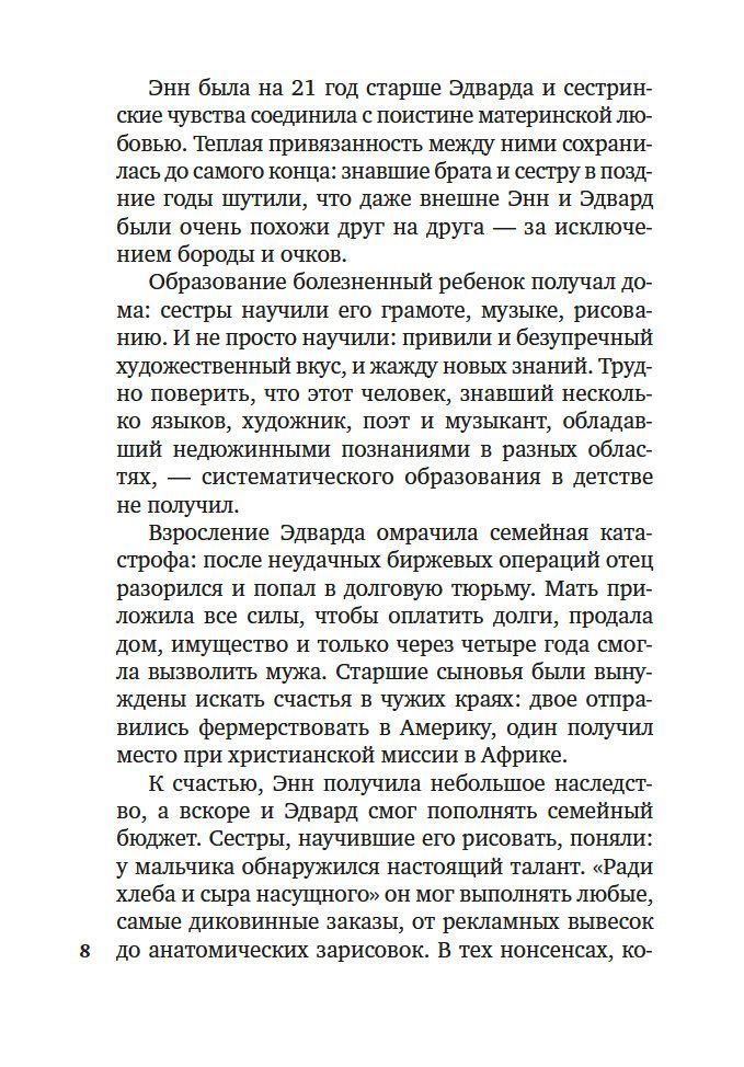 Эдвард Лир – замечательный английский поэт, автор многочисленных и всеми любимых лимериков. Будучи успешным художником, который давал уроки самой королеве Виктории, он начал писать стихи и вошел в историю как создатель нового литературного жанра, до сих пор имеющего многочисленных поклонников и подражателей. Легкая, шутливая, игровая поэзия Лира оказала самое серьезное влияние на литературу: его творчеством вдохновлялся Льюис Кэрролл, его называл в числе своих любимых авторов Даниил Хармс, лимерики сочиняли даже Киплинг, Голсуорси и Джойс, да и в творчестве таких поэтов, как Олег Григорьев и Генрих Сапгир, немало от Лира.