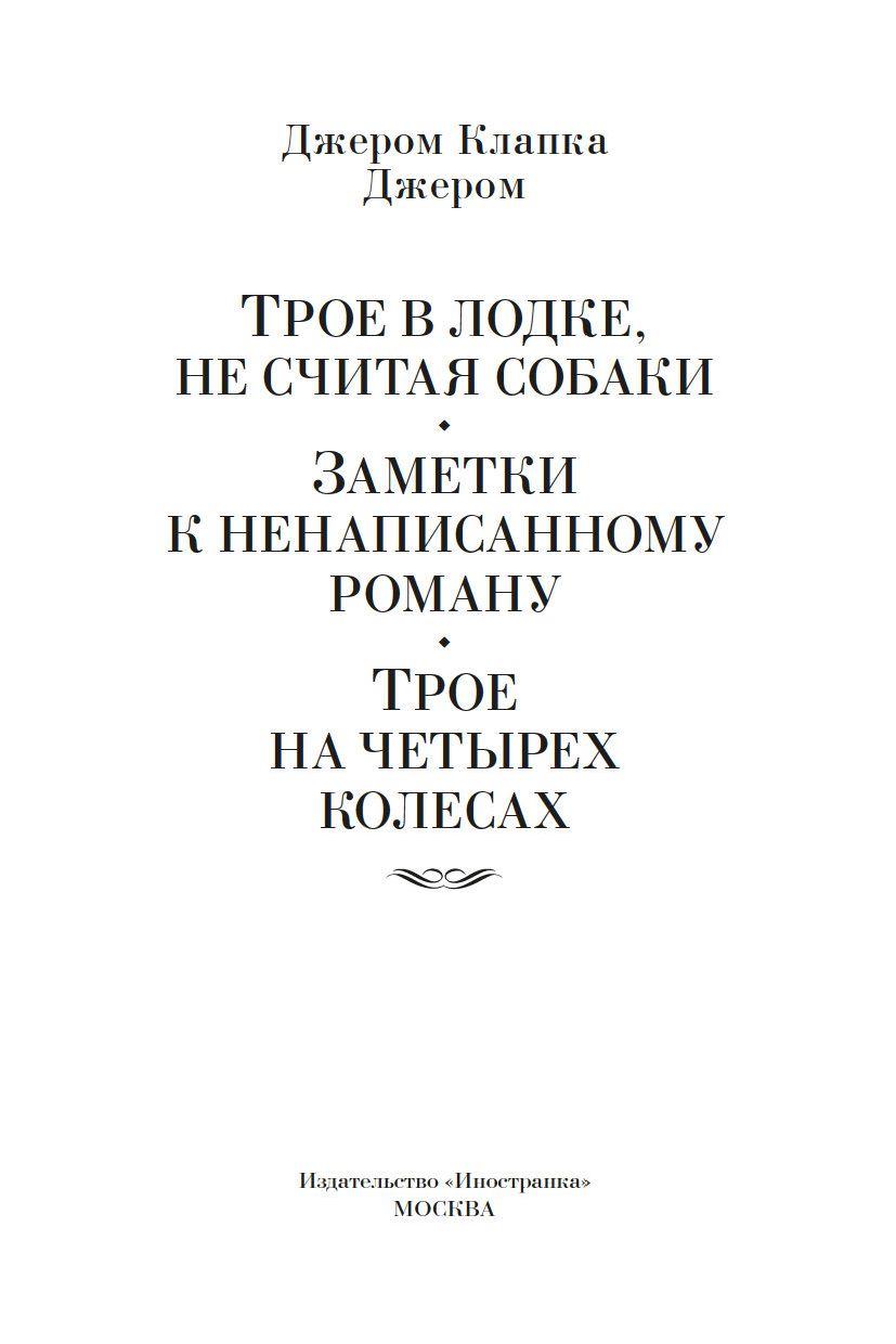 Летом 1888 года английский писатель Джером К. Джером, только что вступивший в законный брак, провел медовый месяц на Темзе. Из путевых впечатлений и воспоминаний этой счастливой поры родилась идея одной из самых смешных книг в мировой литературе. Приключения незадачливых, добродушных англичан, путешествующих по Темзе, о которых Джером написал в романе "Трое в лодке, не считая собаки" и в его продолжении "Трое на четырех колесах" (а также созданный между ними небольшой шедевр "Заметки к ненаписанному роману", в котором узнаются все те же незабываемые герои), стали хорошо известны даже в самых отдаленных уголках планеты.