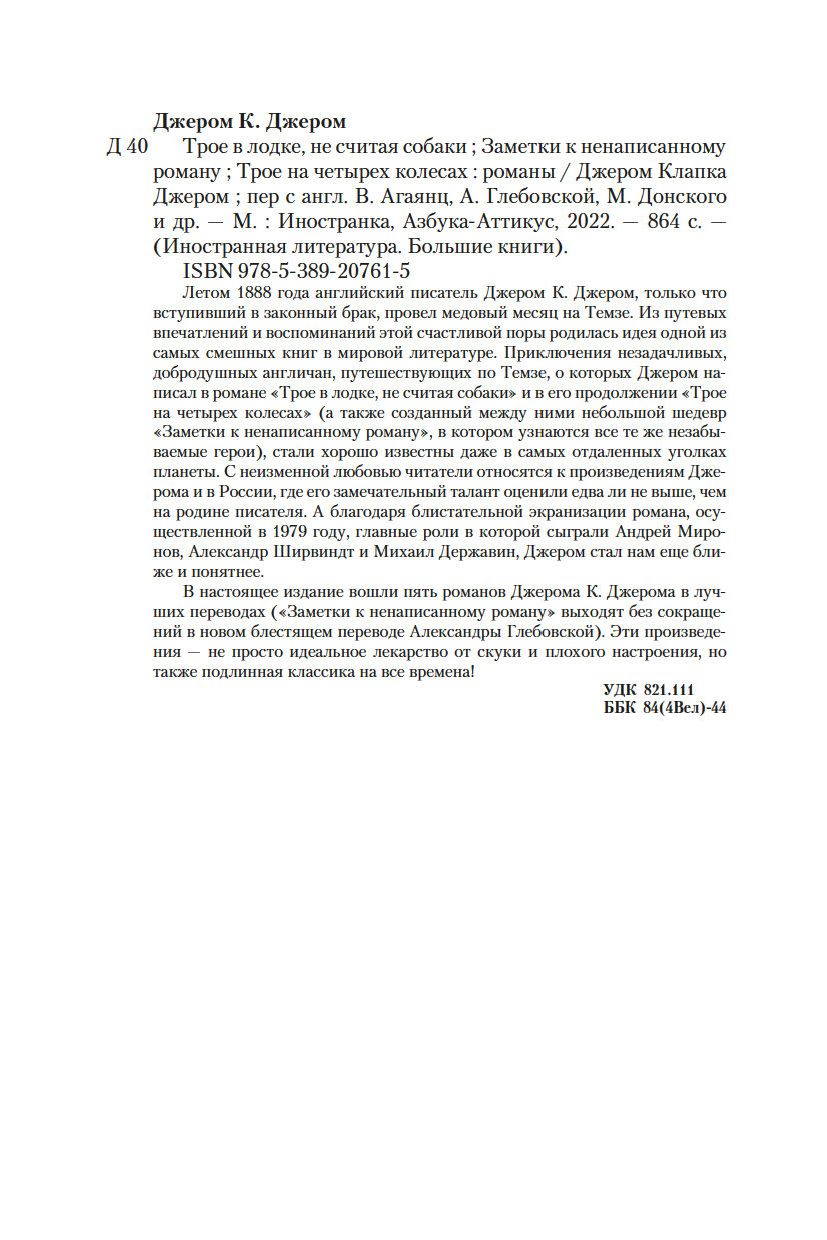 В настоящее издание вошли пять романов Джерома К. Джерома в лучших переводах ("Заметки к ненаписанному роману" выходят в полном виде в новом блестящем переводе Александры Глебовской). Эти произведения – не просто идеальное лекарство от скуки и плохого настроения, но также подлинная классика на все времена!