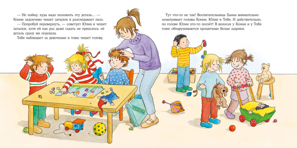 История Конни и её друзей познакомит ребят с правилами профилактики и лечения вшей, а родителей немного успокоит и воодушевит.